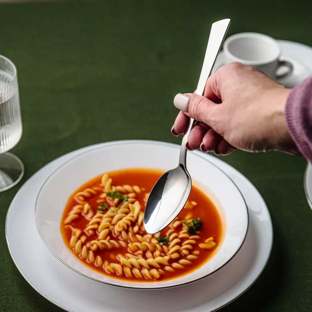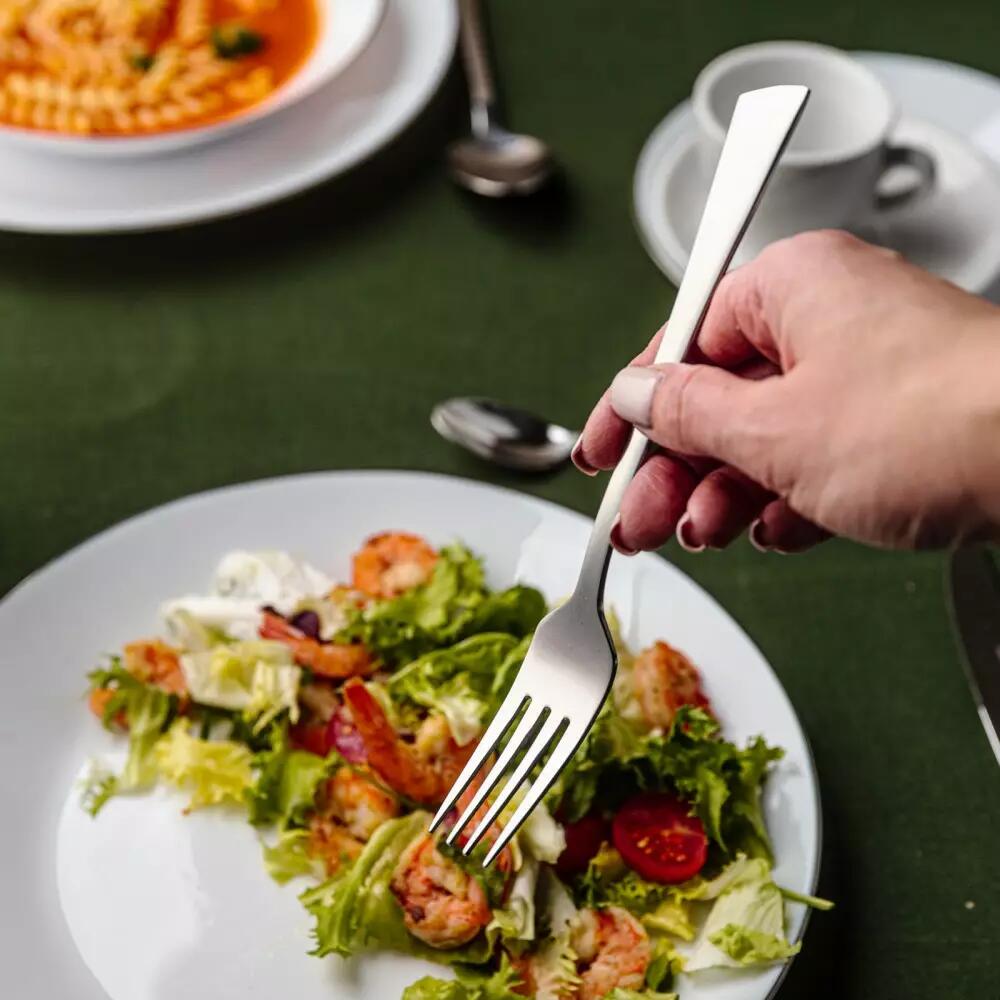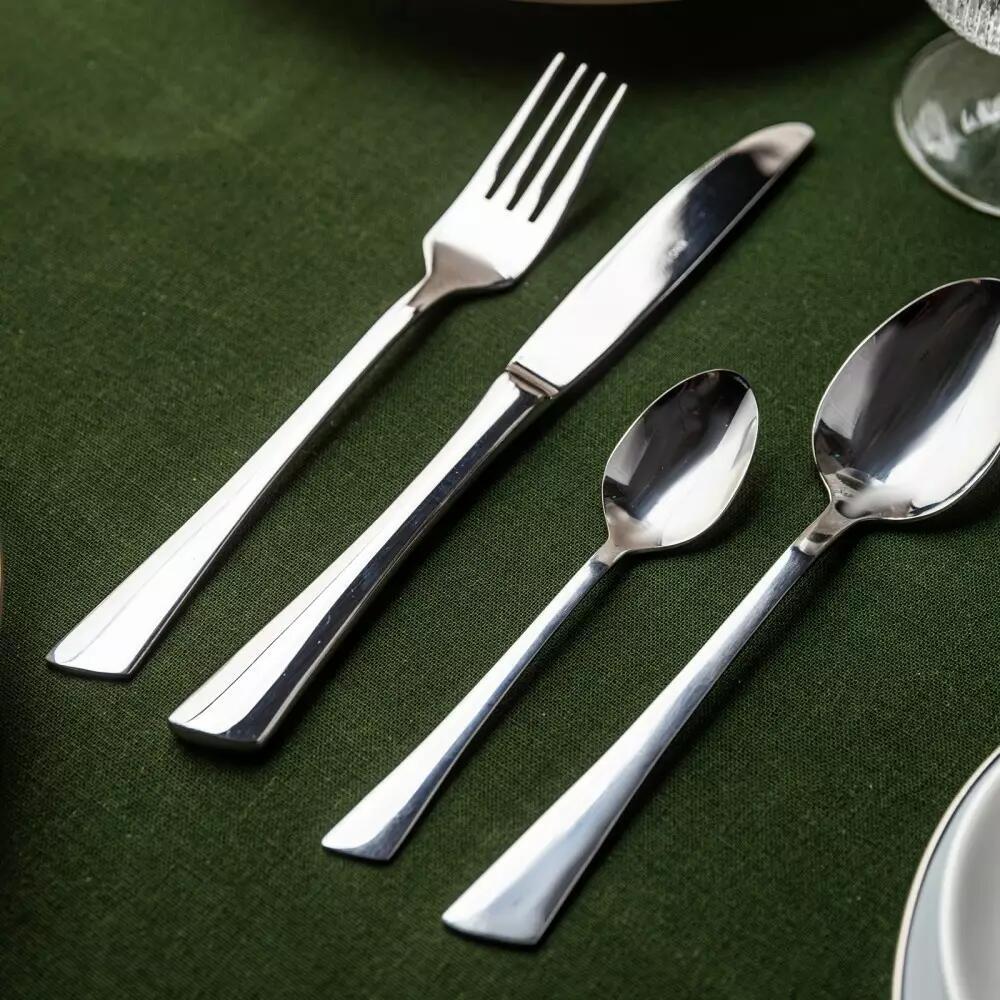 Oțelul inoxidabil din care sunt fabricate tacâmurile este rezistent la coroziune și ușor de păstrat curat.