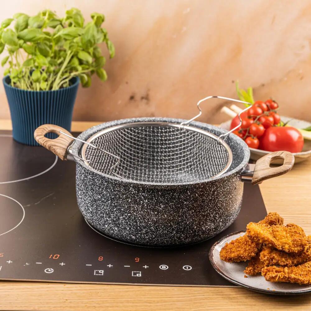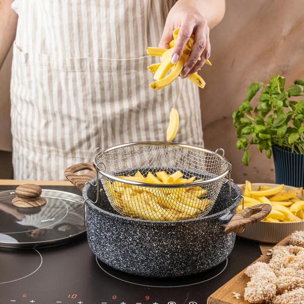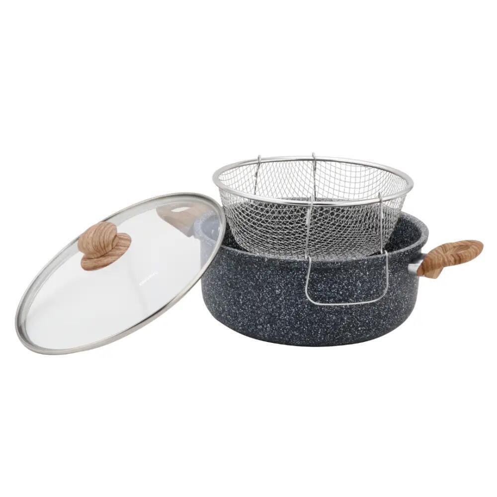 Datorită coșului din oțel inoxidabil, capacului de sticlă cu orificiu de ventilație și stratului antiaderent marmorat, este perfectă pentru mâncăruri la wok, carne, tăiței sau preparate asiatice.