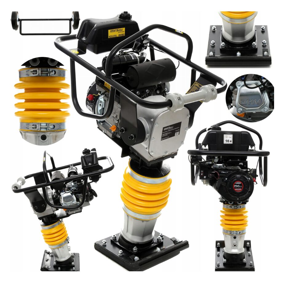 Este o placă vibratoare de tip jumper, alimentată pe benzină, de la KRAFT&DELE, concepută pentru lucrări intensive de drumuri și construcții.