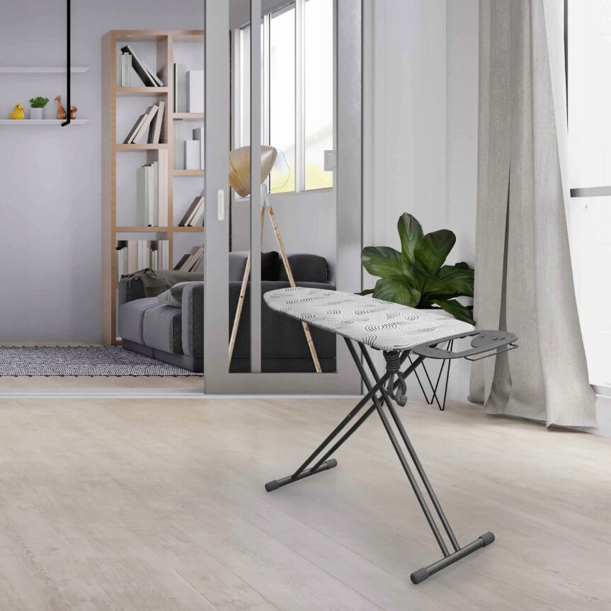 O masă de călcat din oțel acoperit cu pulbere de culoare antracit.