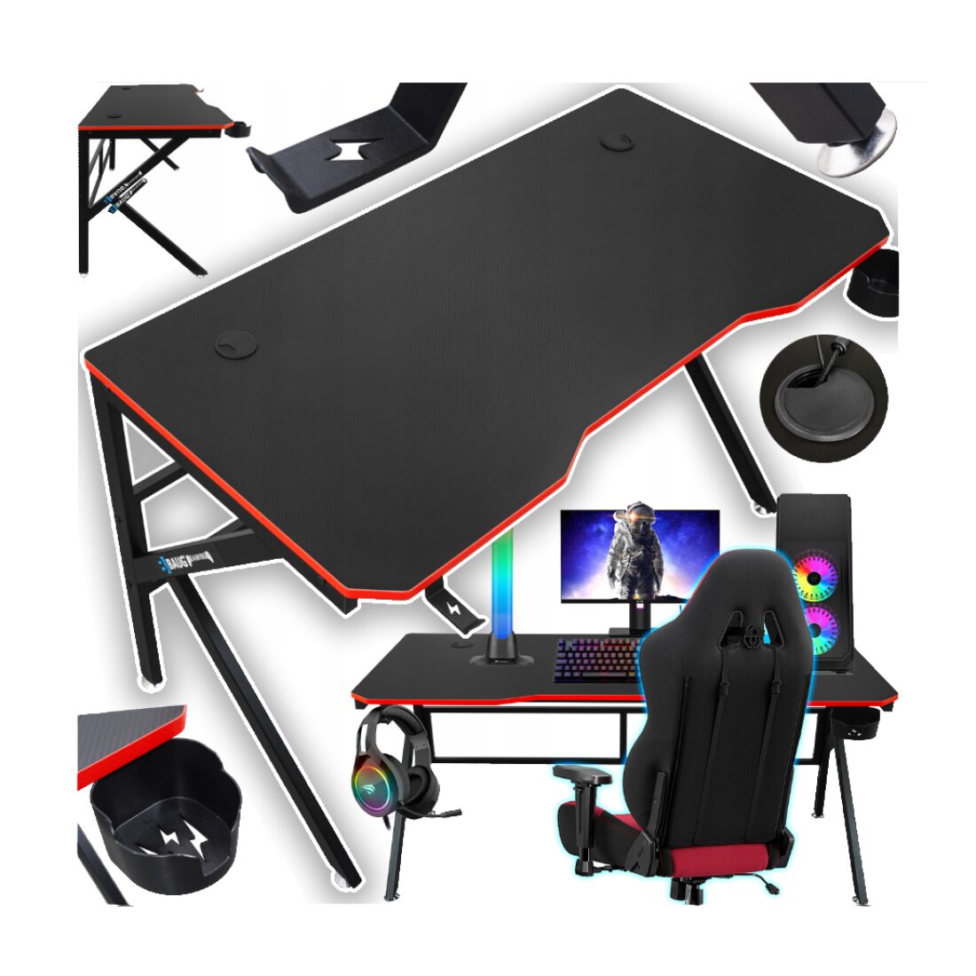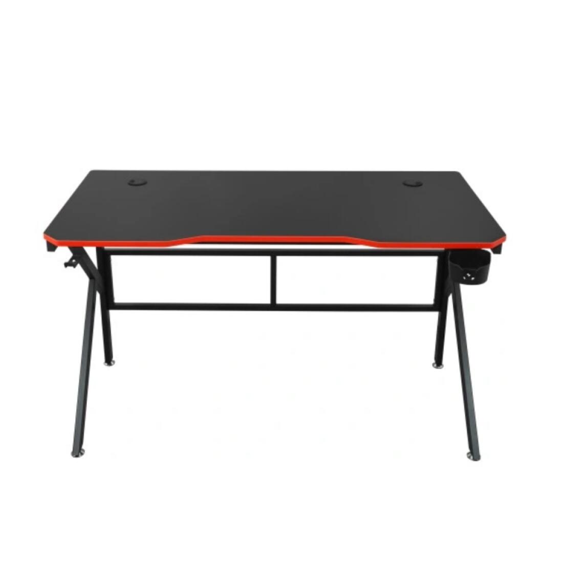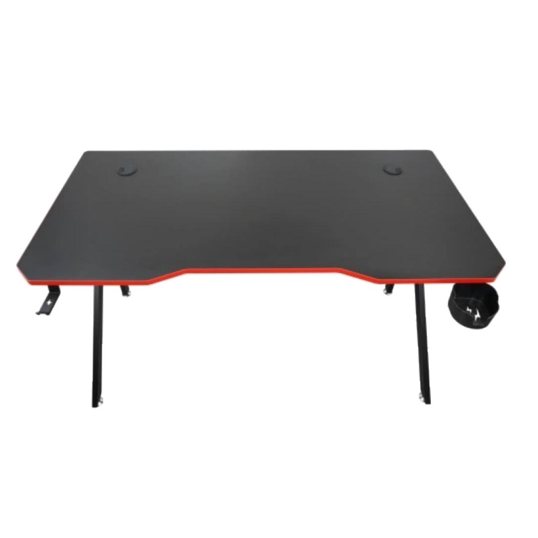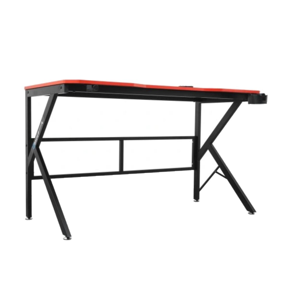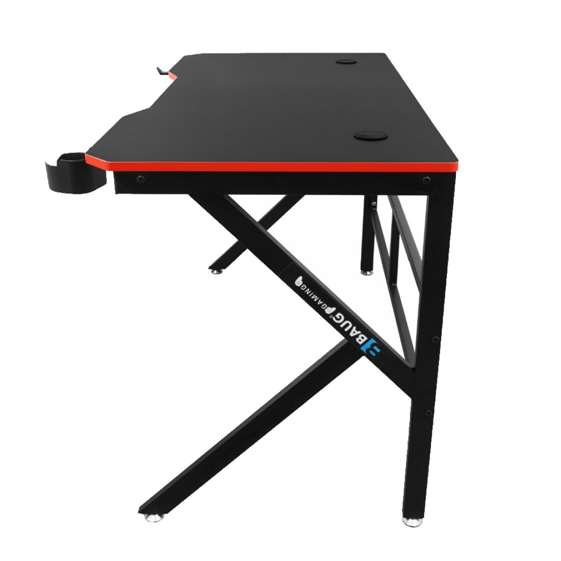 Piciorele sunt montate pe ambele părți ale biroului, astfel încât indiferent de instalare, stația dvs. de jocuri va fi întotdeauna ordonată. Un birou dotat cu suport pentru băuturi și căști.