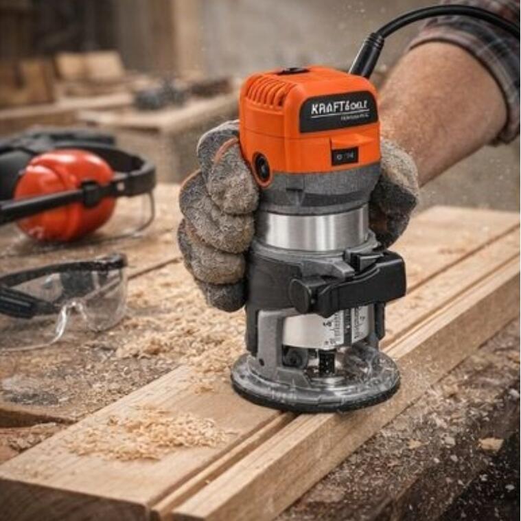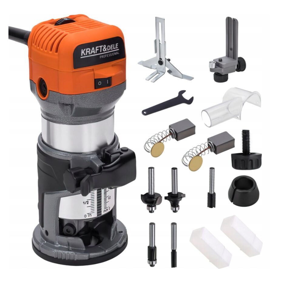 Un opritor de adâncime permite setarea precisă a parametrilor de frezare, iar o priză de praf cu conexiune de aspirare ajută la menținerea curățeniei spațiului de lucru.