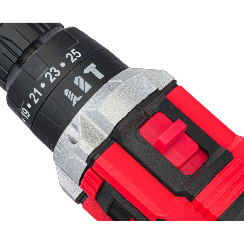 Șurubelnița este echipată cu un ambreiaj cu 25 de poziții de reglare a cuplului pentru înșurubarea eficientă a diferitelor dimensiuni de șuruburi în diferite tipuri de materiale + o poziție dedicată pentru găurire și găurire cu impact.