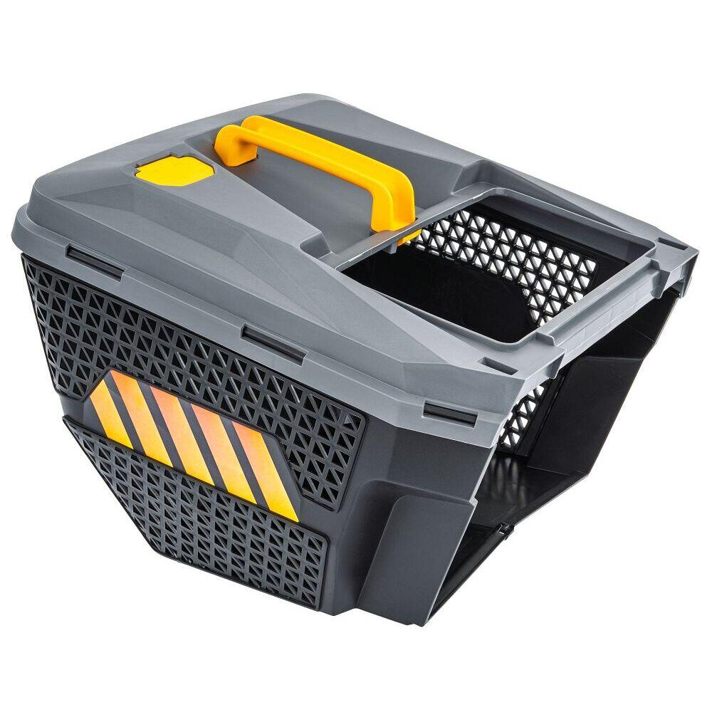 Rezervor mare de 30 de litri pentru iarba tăiată, cu clapetă plină. Acest lucru vă permite să lucrați mai mult fără a fi nevoie să îl goliți frecvent.