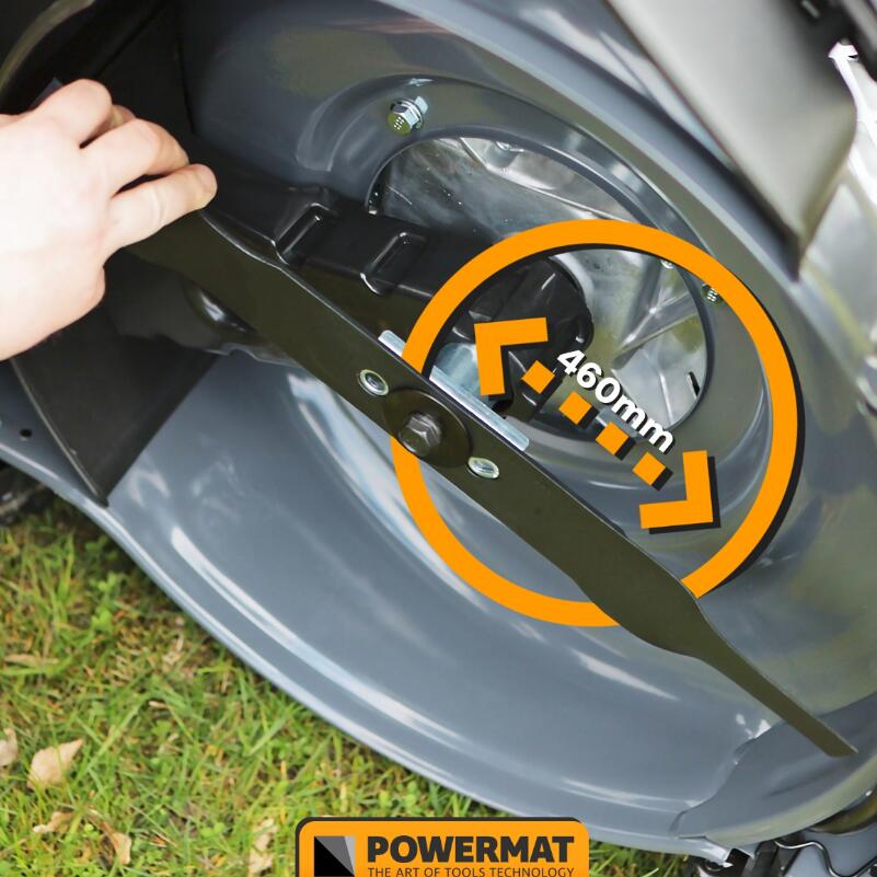 Lama de tăiere a cositoarei este fabricată din oțel călit, ceea ce asigură o durată lungă de viață a lamei. Lățimea de tăiere a cositoarei este de 460 mm, ceea ce permite lucrul confortabil pe suprafețe mari. Montarea lamei cu un șurub durabil oferă o durabilitate excepțională a unității de tăiere.