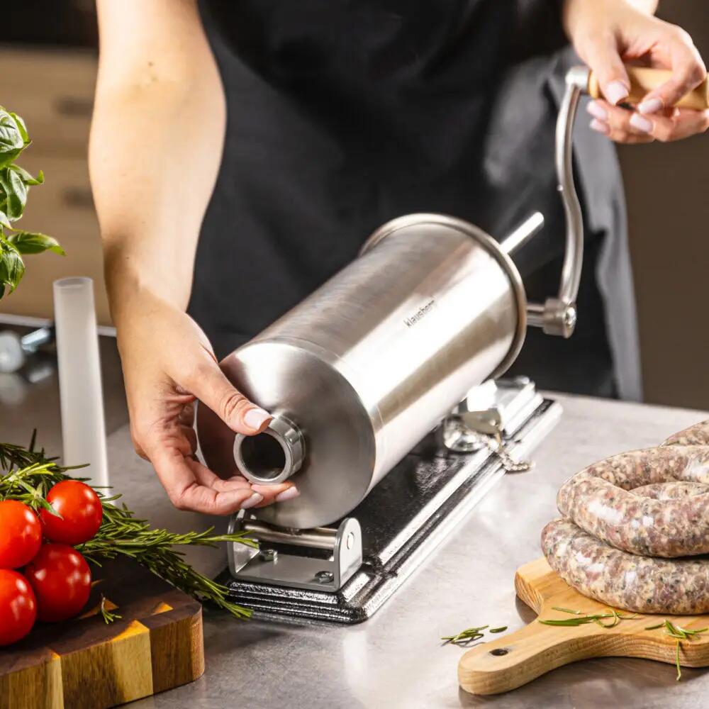 Mașina de umplut cârnați este o alegere excelentă atât pentru pasionații de mezeluri preparate în casă, cât și pentru bucătarii profesioniști.