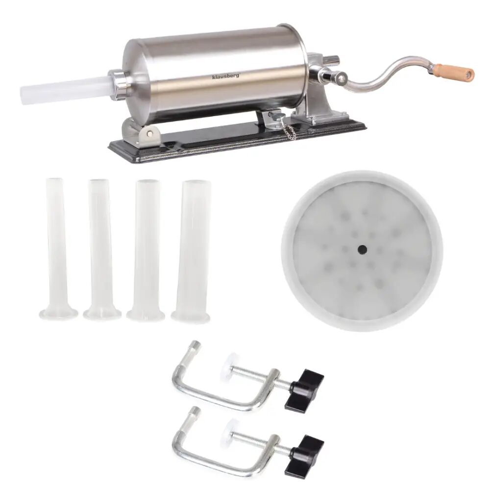 Echipat cu patru pâlnii interschimbabile de diferite diametre (17 mm, 21 mm, 25 mm, 29 mm), vă permite să preparați o varietate de cârnați – de la cârnați kabanos subțiri la cârnați la grătar mai groși.