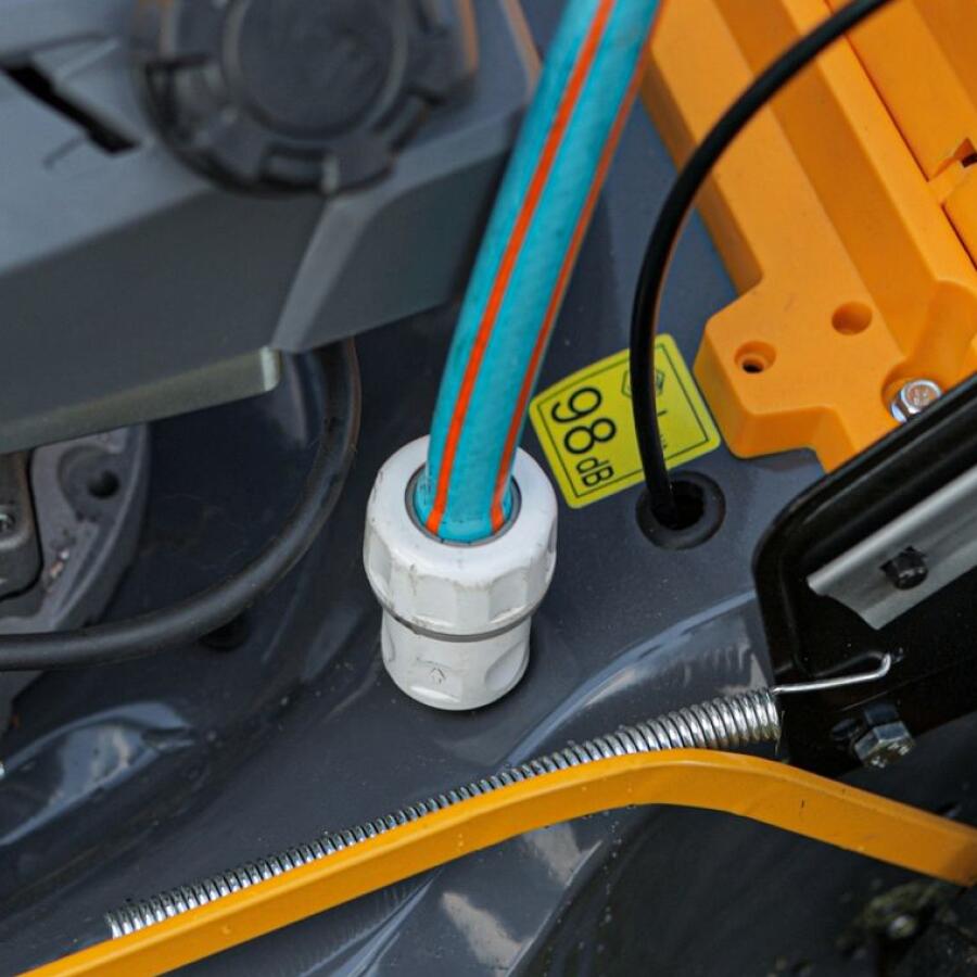 Datorita acestei solutii, nu trebuie sa ridicam cositorul pentru a-l spala de rezidurile de iarba.