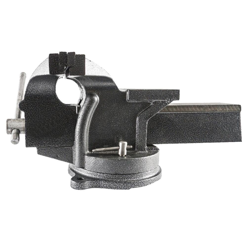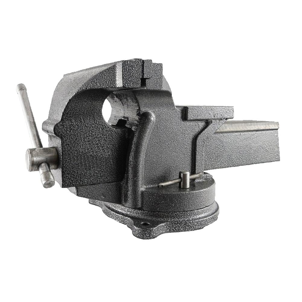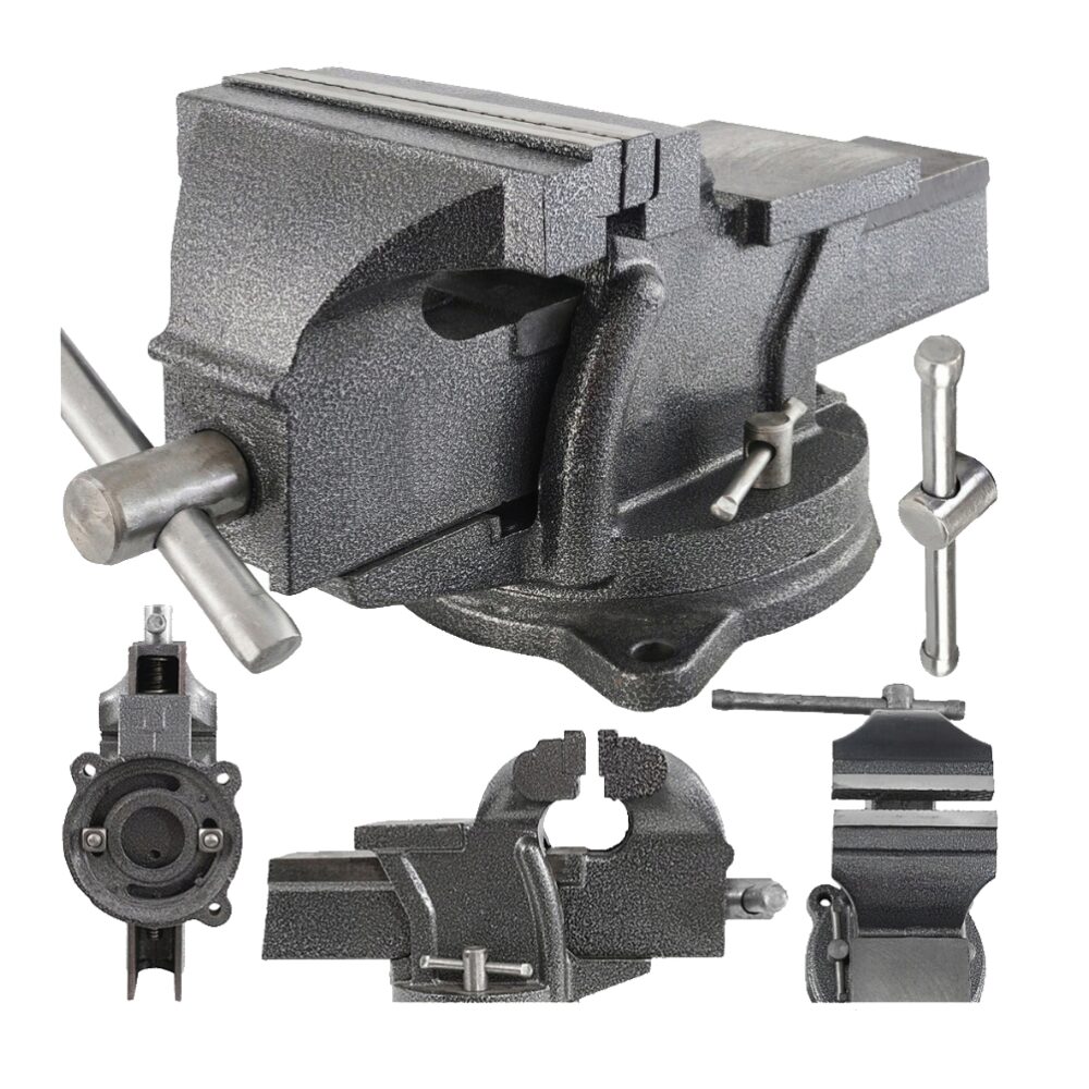 Menghină profesională de la VERKE. Conceput pentru ateliere de lăcătuși exigente, servicii general-mecanice și auto, realizate precis din cele mai bune materiale, extrem de universale datorită posibilității de rotație. Corp din fontă gri, fălci interschimbabile de 200 mm și nicovală din oțel călit. Un viciu montat pe un platan rotativ. Suprafață acoperită cu lac negru „ciocan”.