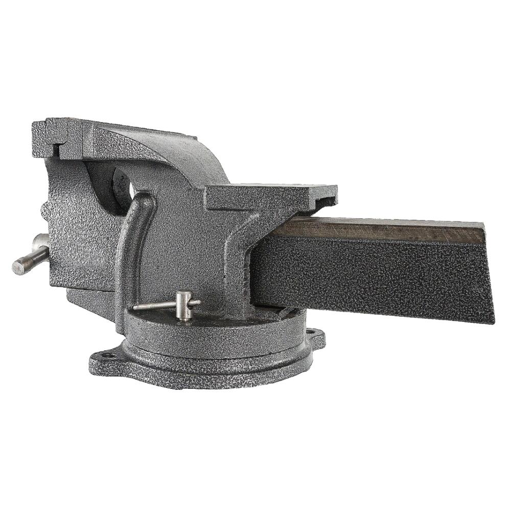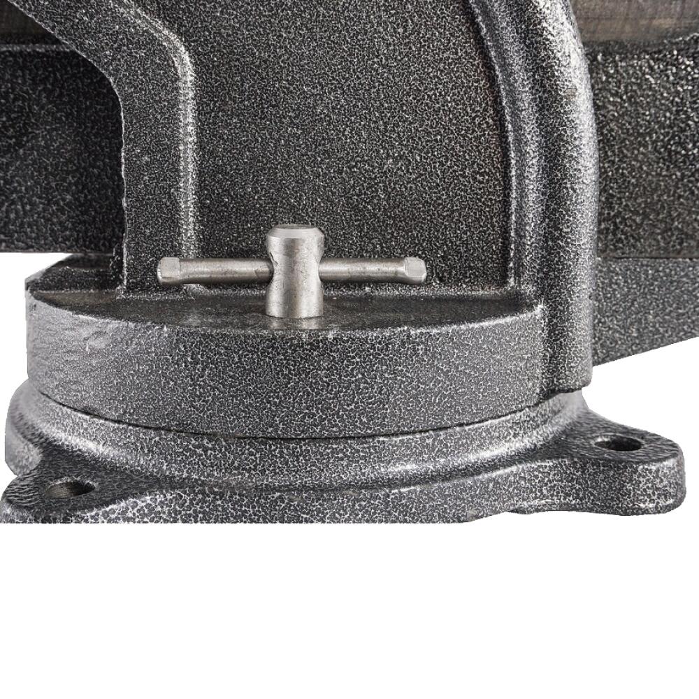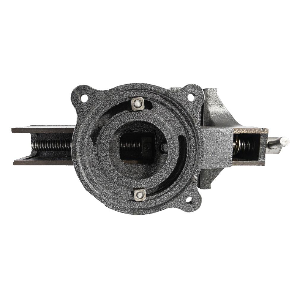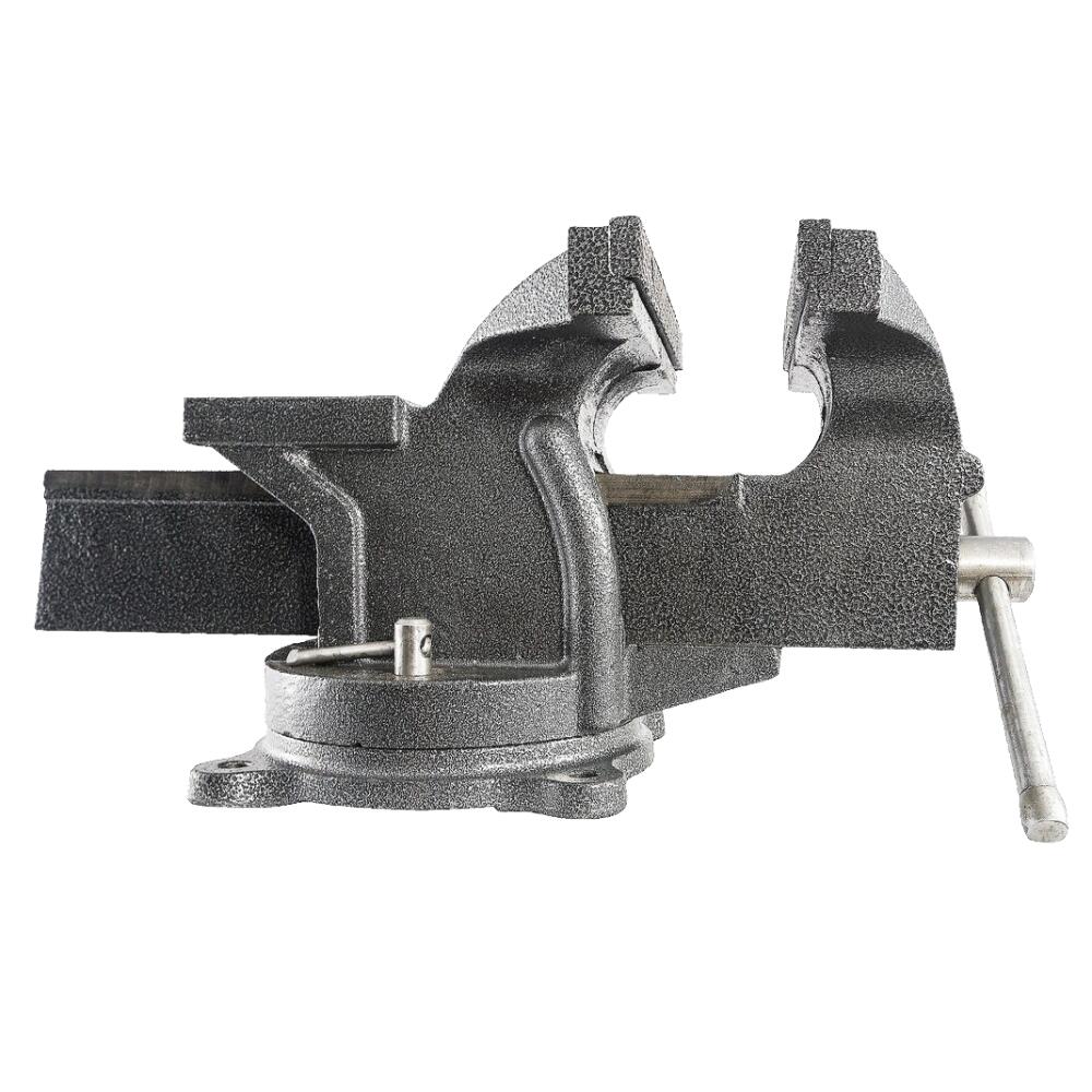 Menghină profesională de la VERKE. Conceput pentru ateliere de lăcătuși exigente, servicii general-mecanice și auto, realizate precis din cele mai bune materiale, extrem de universale datorită posibilității de rotație. Corp din fontă gri, fălci interschimbabile de 200 mm și nicovală din oțel călit. Un viciu montat pe un platan rotativ. Suprafață acoperită cu lac negru „ciocan”.