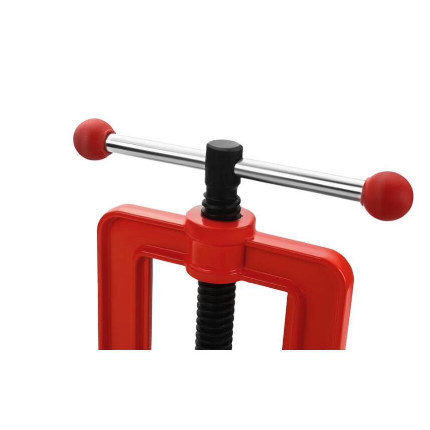 Construcția sa robustă și fălcile cu o gamă de prindere de până la 60 mm asigură o fixare stabilă și sigură în timpul tăierii, filetării și sudării.