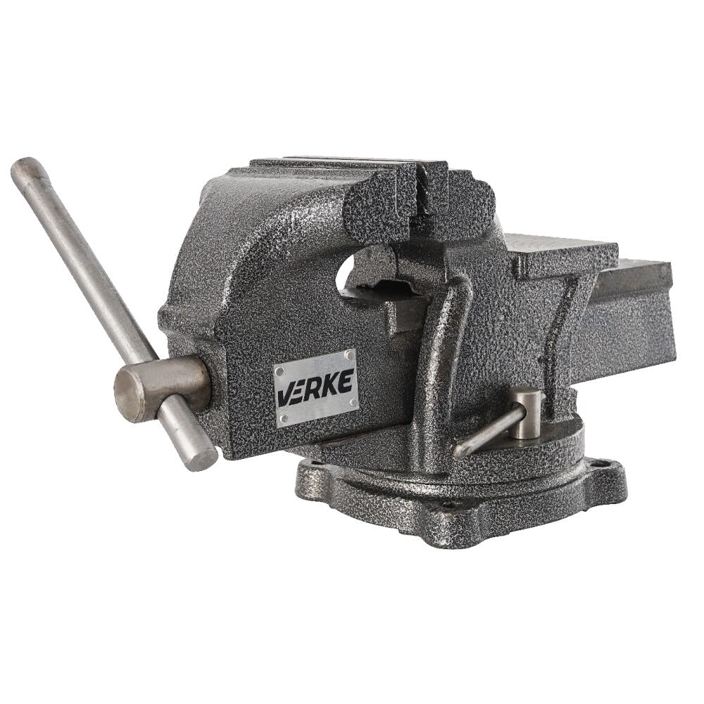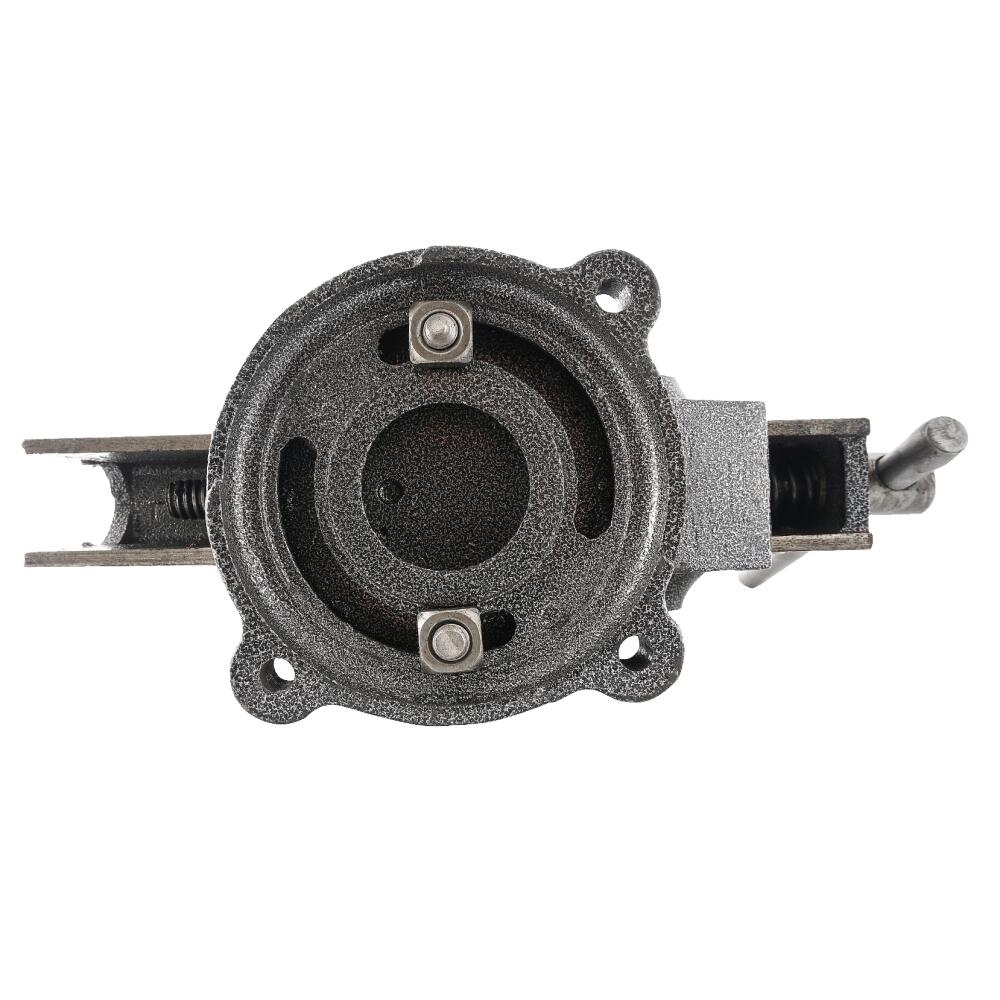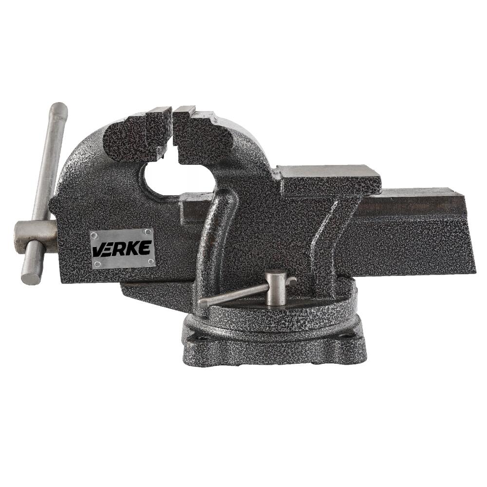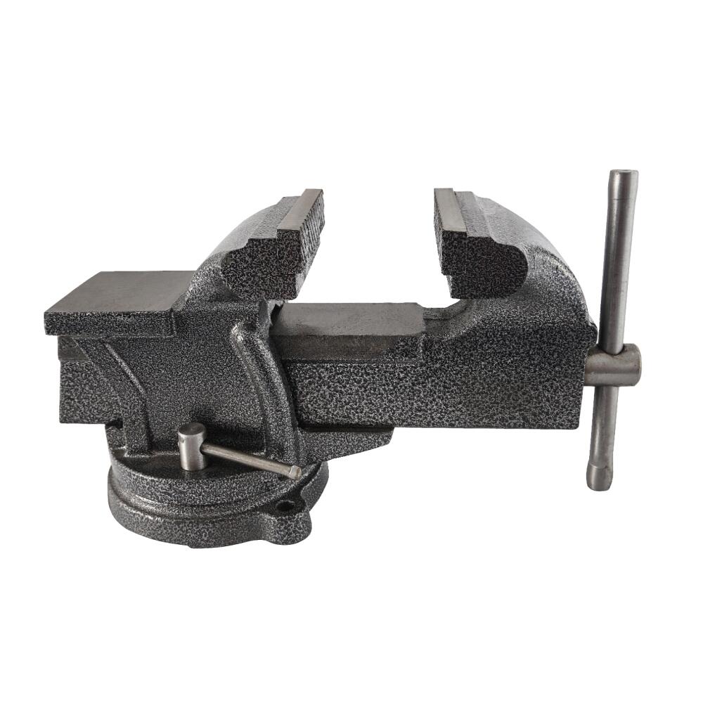 Corp din fontă gri, fălci înlocuibile de 100 mm și nicovală din oțel călit.