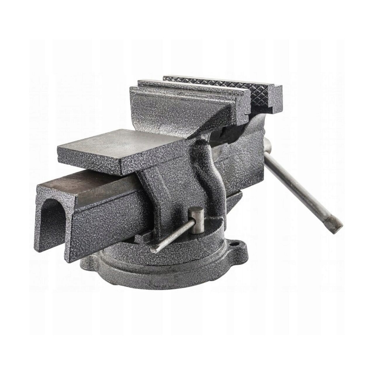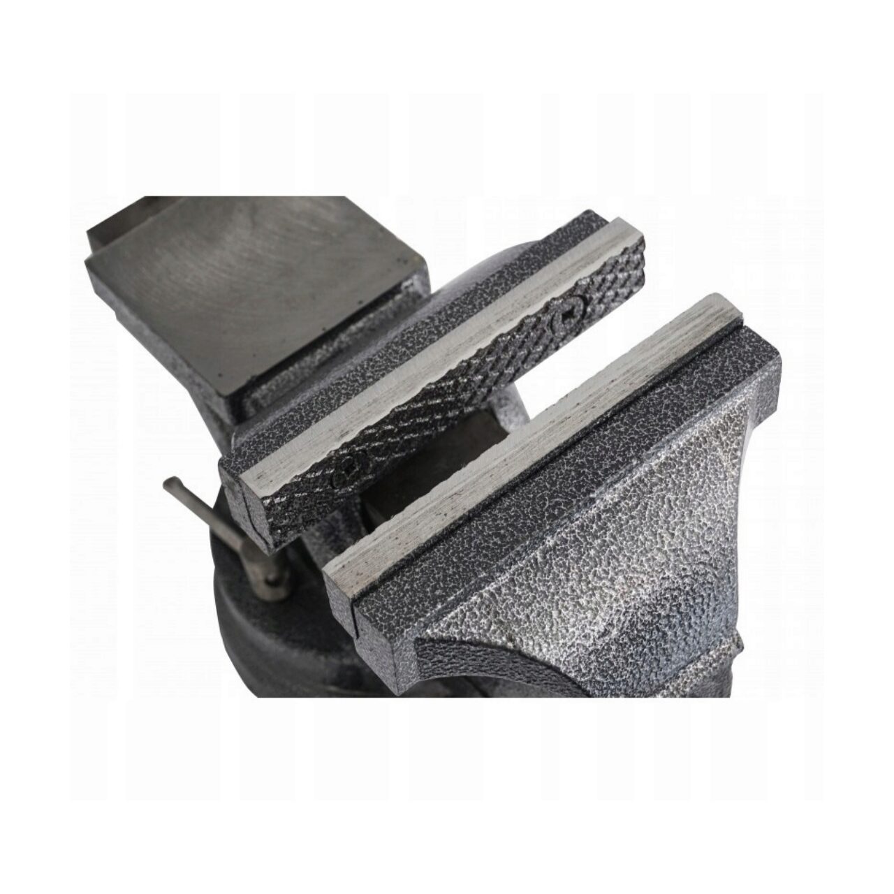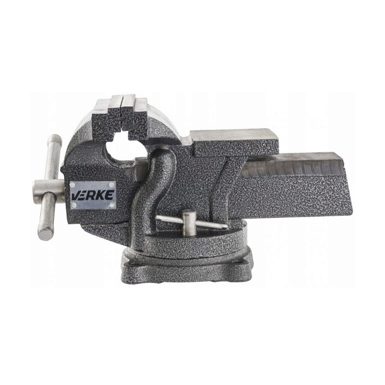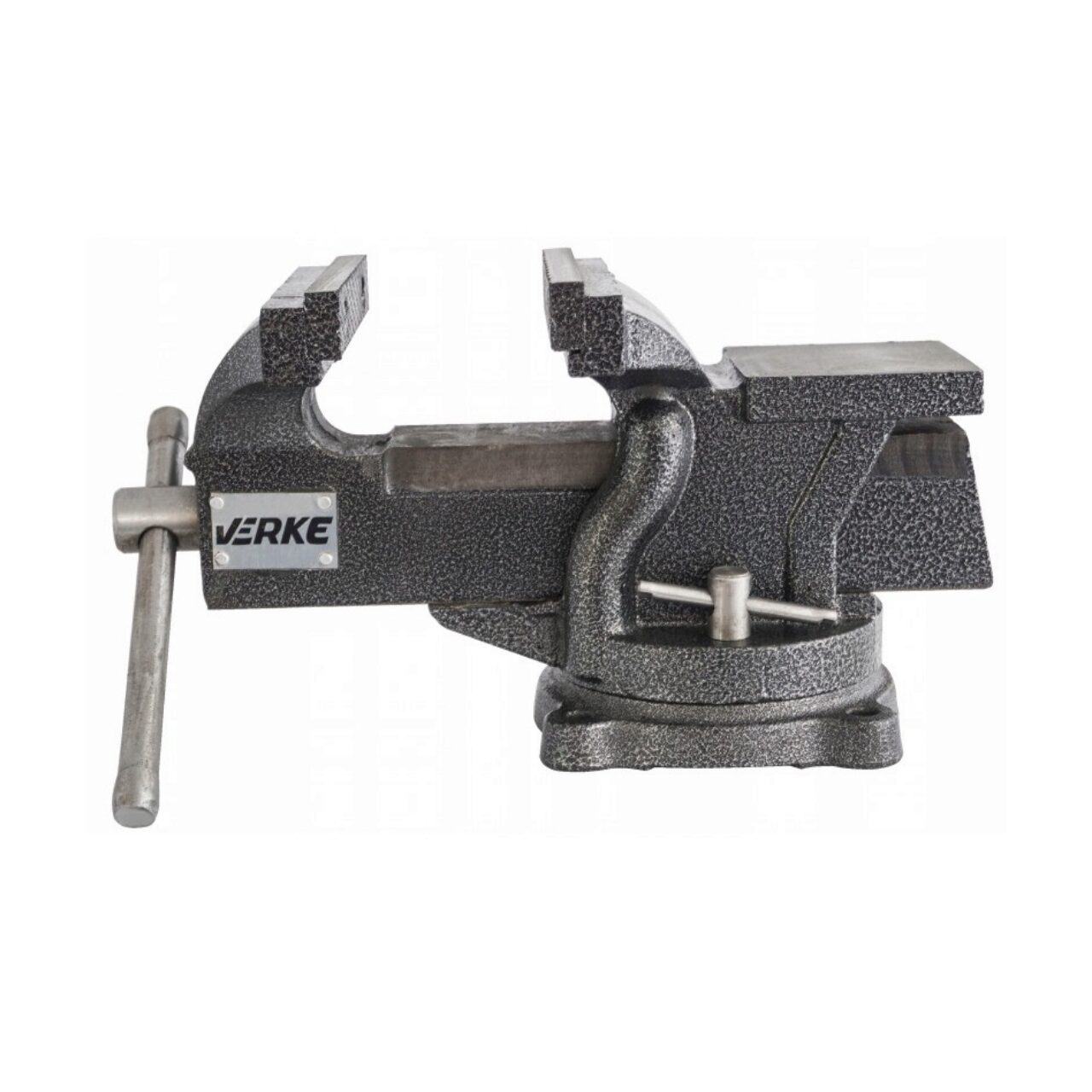 Menghină profesională marca VERKE. Conceput pentru ateliere de lăcătuși solicitante, servicii de mecanică generală și auto, realizate precis din cele mai bune materiale, extrem de universale datorită posibilității de rotație. Corp din fontă gri, fălci interschimbabile de 125 mm și nicovală din oțel călit. Un menghin montat pe o placă turnantă. Suprafața este acoperită cu lac negru „ciocan”.
