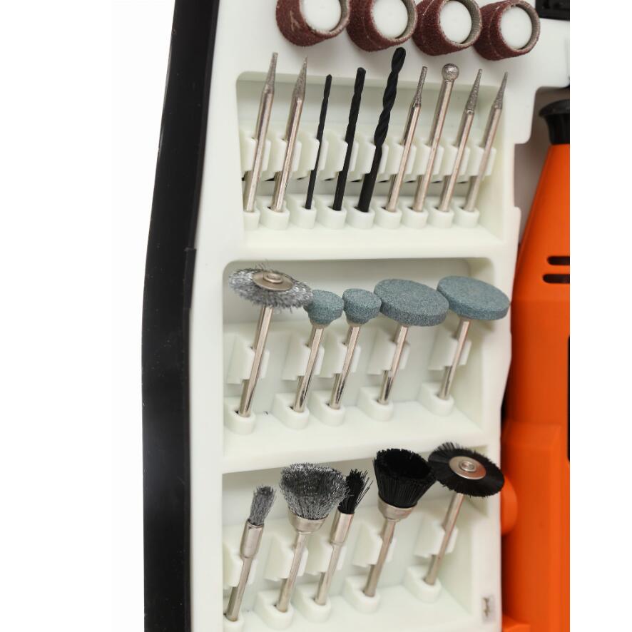 Cu polizorul multifuncțional și o gamă largă de accesorii, puteți găuri, șlefui și peria.Controlul vitezei asigură că viteza de lucru este ajustată la tipul de materiale prelucrate. Mini-polizorul este un dispozitiv ideal pentru lucrări în ateliere: șlefuire, gravare, lustruire, frezare și bijuterii, modelare, hobby-uri.Setul conține 235 de elemente, datorită cărora veți alege vârful de care aveți nevoie pentru lucrarea pe care o faceți. Totul într-un pachet practic.Designul simplu și dimensiunile reduse ale dispozitivului garantează ușurința și fiabilitatea utilizării. Se caracterizează printr-o precizie ridicată a funcționării.Caracteristici:- Calitate înaltă a manoperei la un preț accesibil- Produs certificat, care dovedește calitatea produsului!- Controlul vitezei!- Până la 235 de elemente- Utilizare versatilă- Toate elementele metalice sunt călite!