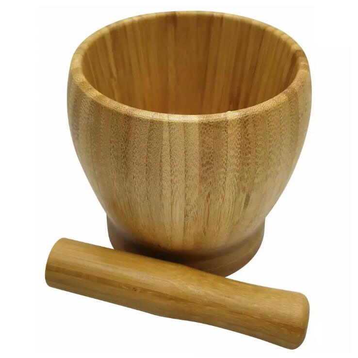 Mortar ecologic din bambus 100% natural. Vă va permite să pregătiți rapid condimente proaspăt măcinate, aromate, care stau la baza oricărei bucătării bune. Completat cu un bătător de bambus.