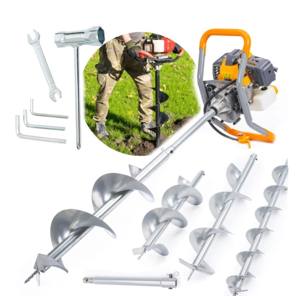 Motoburghiu pamant 6 CP 3 burghie + prelungitor, freza foreza pamant, Powermat