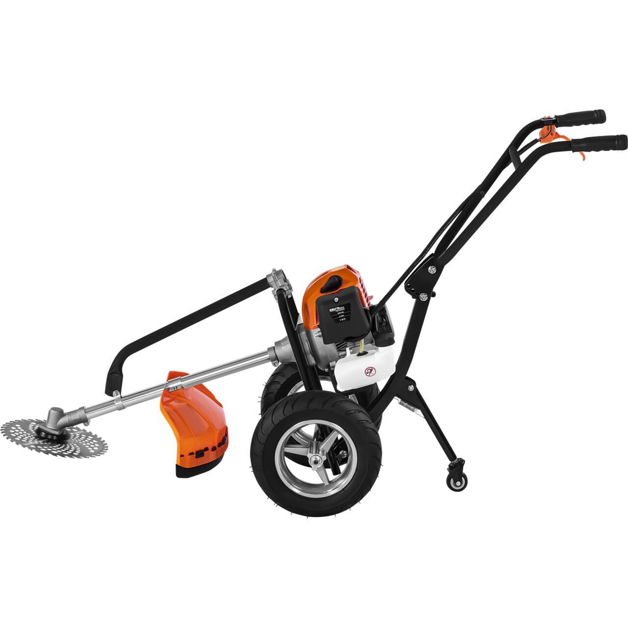 Echipat cu un motor puternic de 5,2 CP oferă o putere de tăiere excelentă și stabilitate datorită cadrului său ușor din aluminiu și roților mari și robuste.