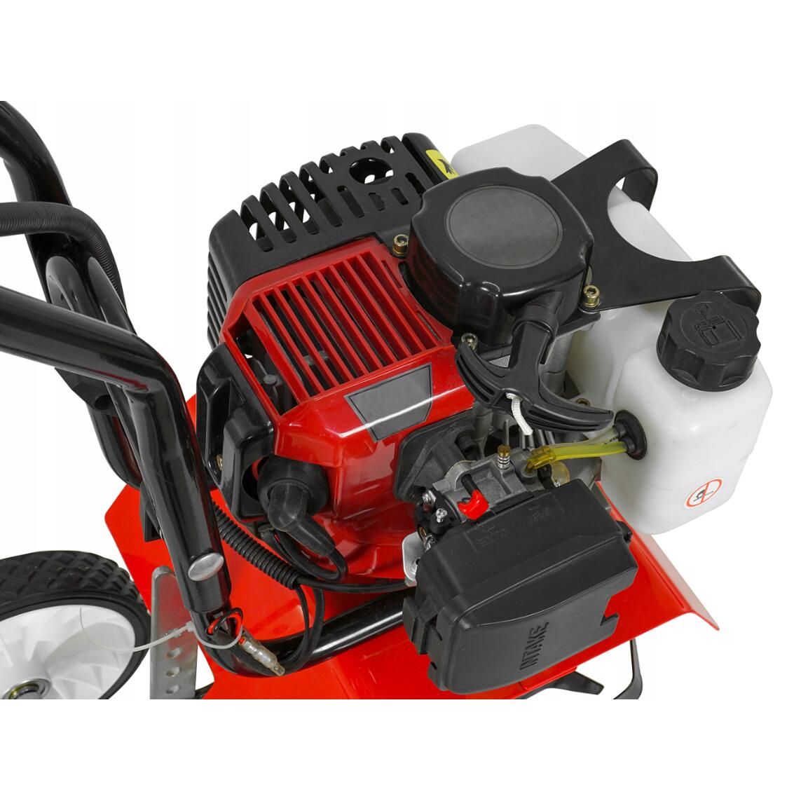 Motocultorul este o motosapa alimentata pe benzina cu motor in 2 timpi pentru munca casnica. Este perfect pentru cultivatul suprafețe mari de câmp și pentru măcinarea unor bulgări mari de pământ. Datorită puterii mari a motorului cu ardere, cuțitele din oțel maruncesc solul. Este extrem de util atunci când introduceți îngrășământ. Dispozitivul perfect pentru grădini și terenuri de acasă.