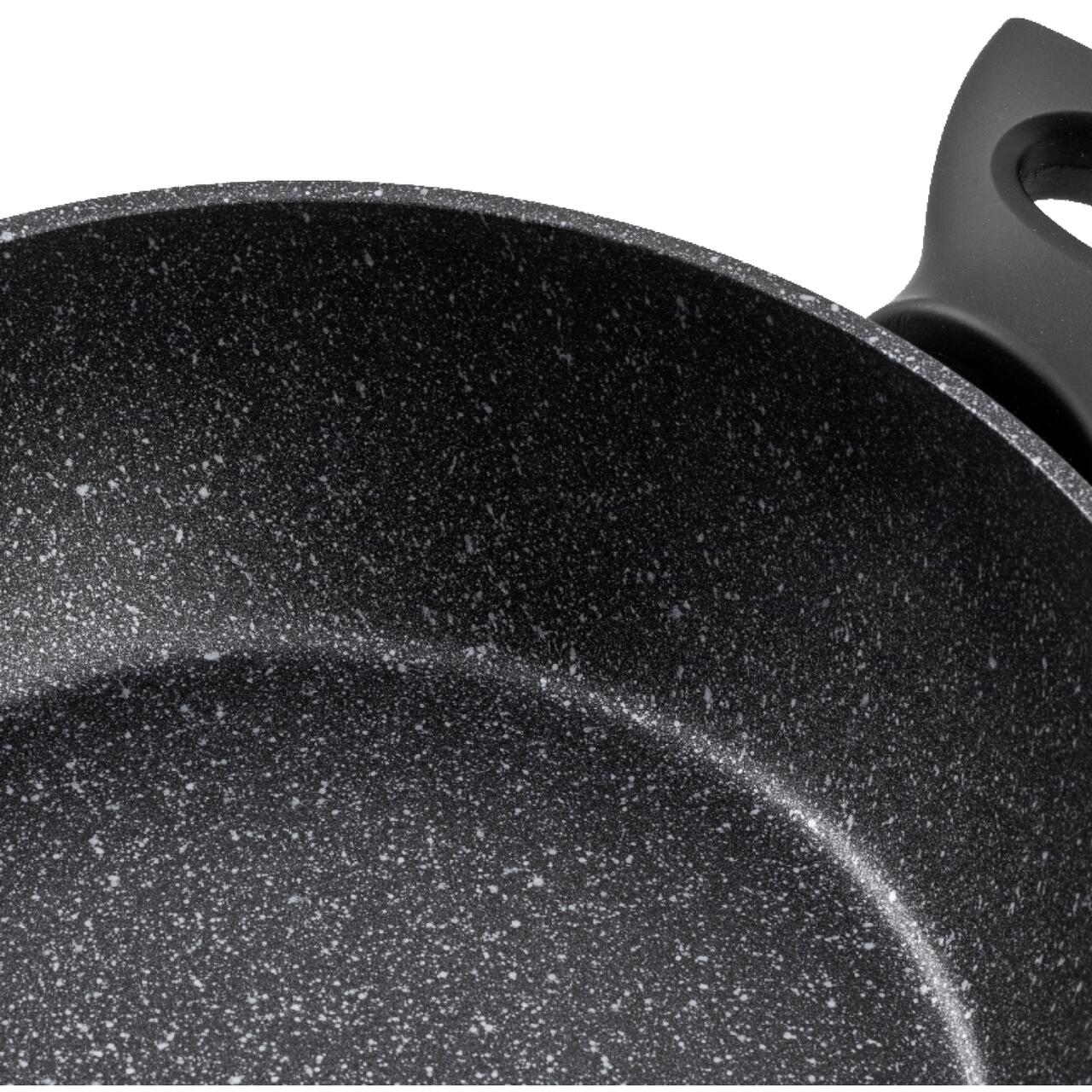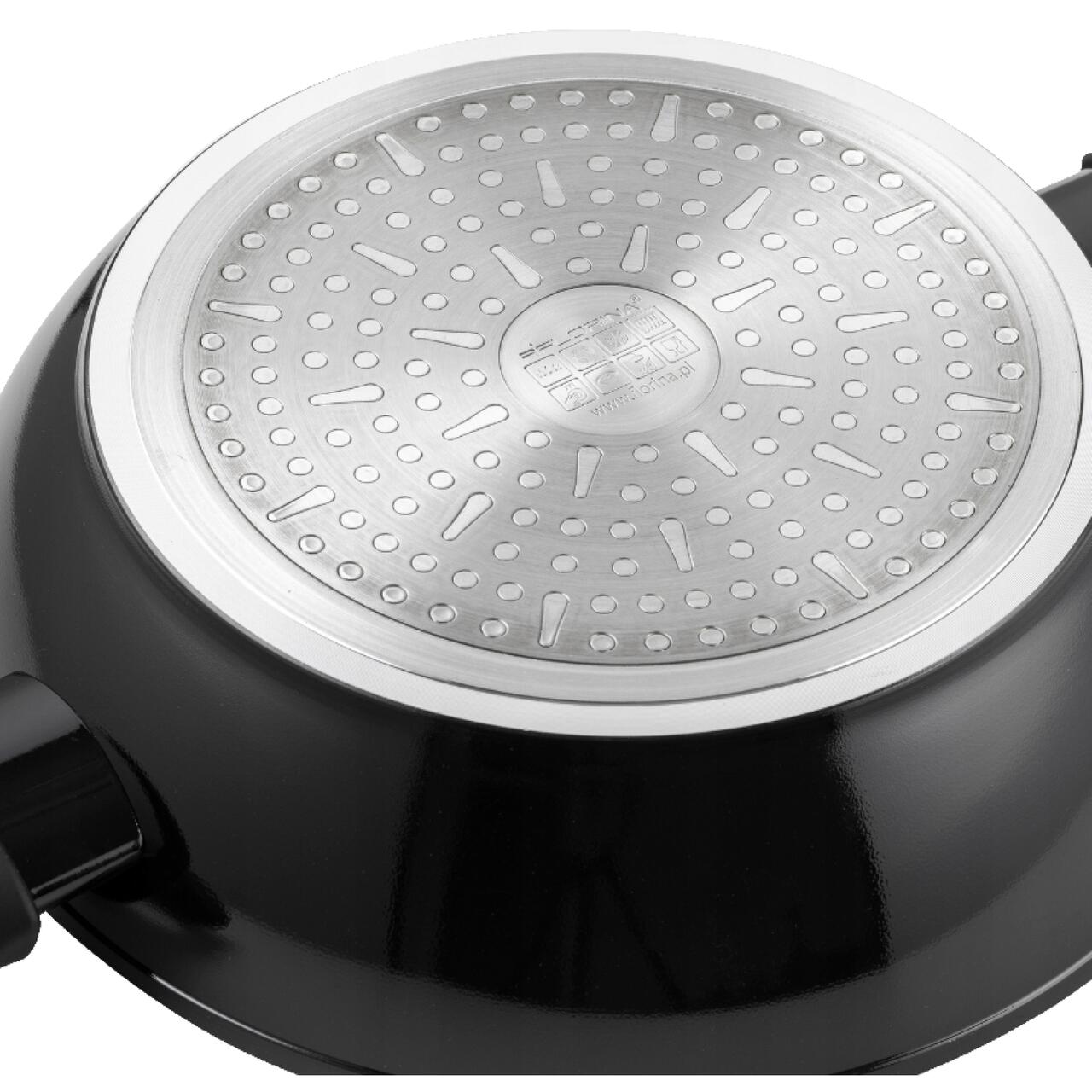 Această oală neagră, modernă, este realizată din aluminiu forjat , ceea ce garantează o rezistență ridicată la deformare și o distribuție uniformă a căldurii . Datorită acestui fapt, alimentele se gătesc rapid și uniform. În plus, interiorul oalei este acoperit cu un strat antiaderent , care împiedică lipirea alimentelor, facilitând curățarea.