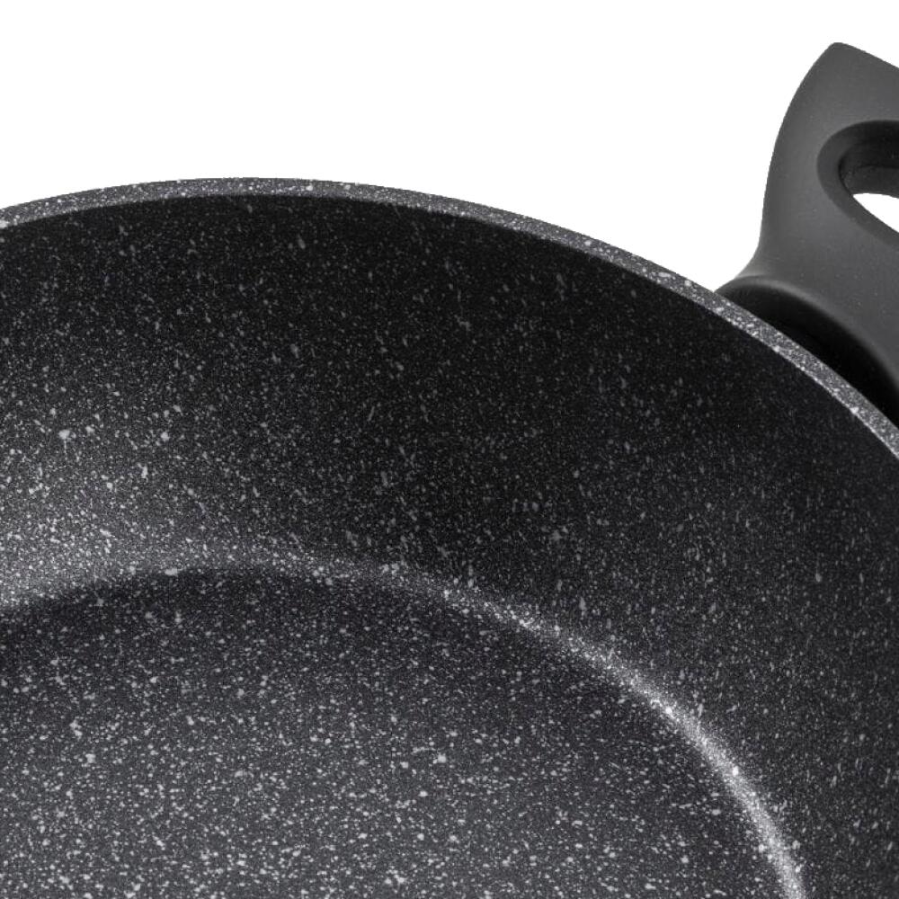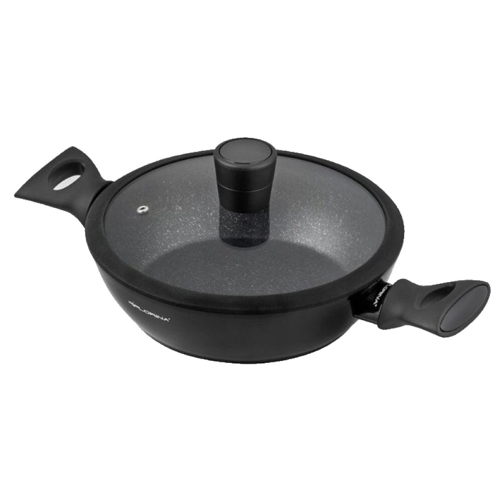 Această oală neagră, modernă, este realizată din aluminiu forjat , ceea ce garantează o rezistență ridicată la deformare și o distribuție uniformă a căldurii . Datorită acestui fapt, alimentele se gătesc rapid și uniform. În plus, interiorul oalei este acoperit cu un strat antiaderent , care împiedică lipirea alimentelor, facilitând curățarea.