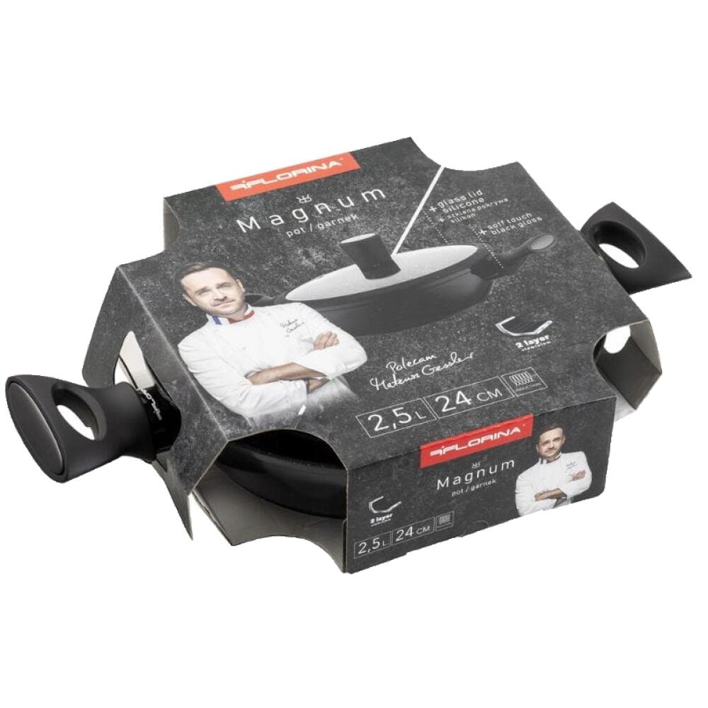 Este o alegere excelentă pentru cei care apreciază calitatea înaltă și eficiența atunci când gătesc. Ghiveciul din aluminiu Florina Magnum este o garanție a rezultatelor culinare excelente și a confortului la pregătirea meselor. În plus, datorită versatilității sale, poate fi folosit cu succes pe diferite tipuri de aragaz , inclusiv cu inducție. Gătitul devine o plăcere cu această oală Magnum unică .