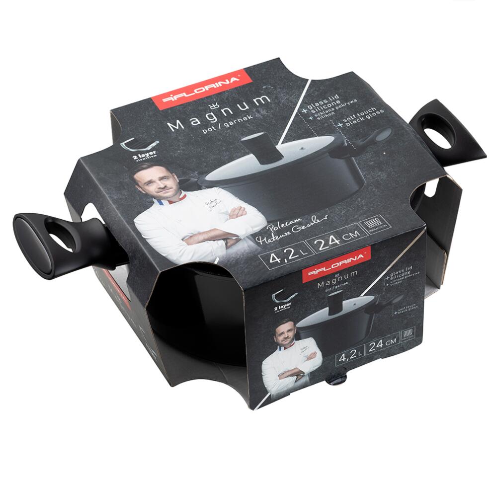 Este o alegere excelentă pentru cei care apreciază calitatea înaltă și eficiența atunci când gătesc. Ghiveciul din aluminiu Florina Magnum este o garanție a rezultatelor culinare excelente și a confortului la pregătirea meselor. În plus, datorită versatilității sale, poate fi folosit cu succes pe diferite tipuri de aragaz , inclusiv cu inducție. Gătitul devine o plăcere cu această oală Magnum unică .