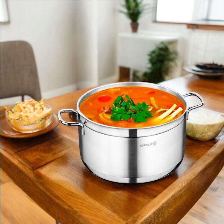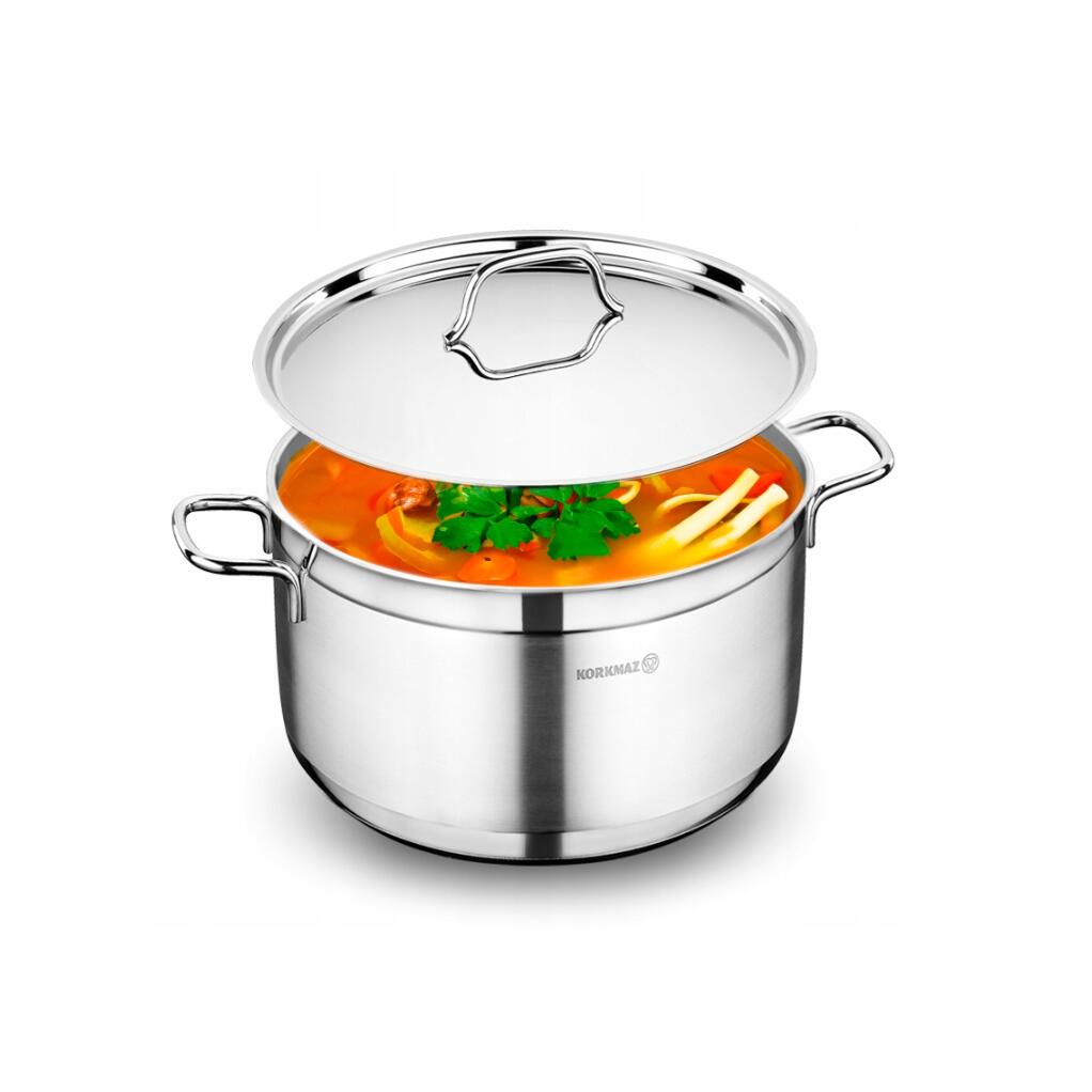 Oala cu capac din inox, 18x10cm 2.5litri, compatibila cu toate tipurile de aragaz, Korkmaz
