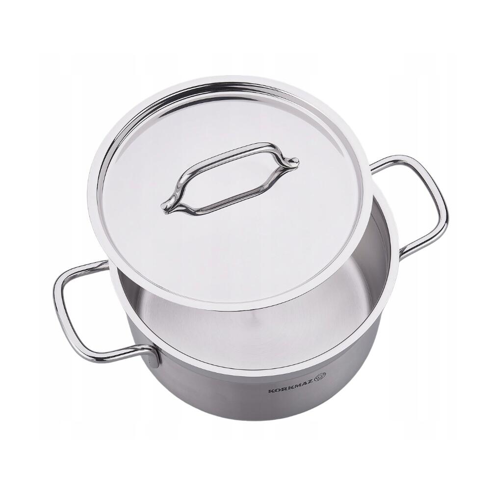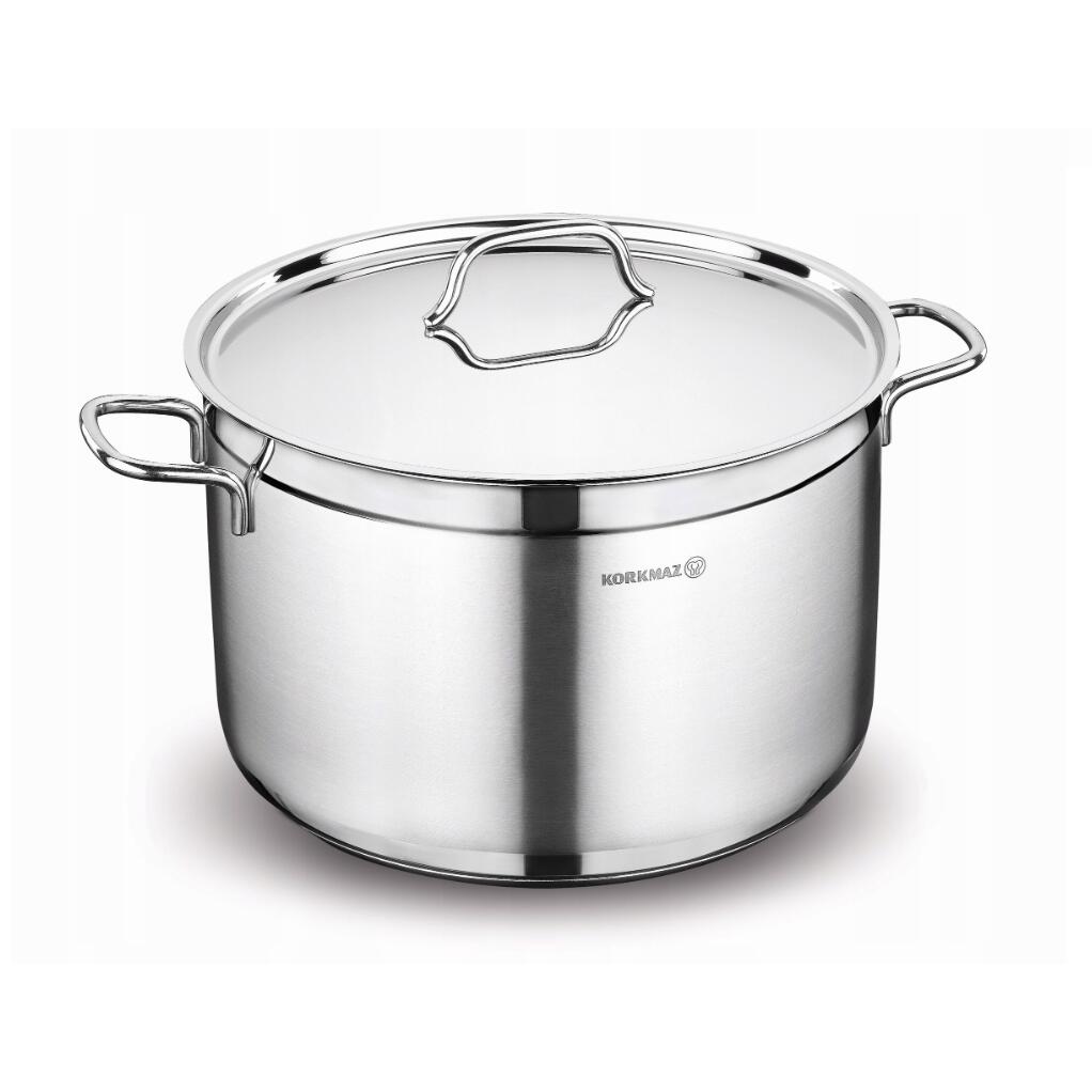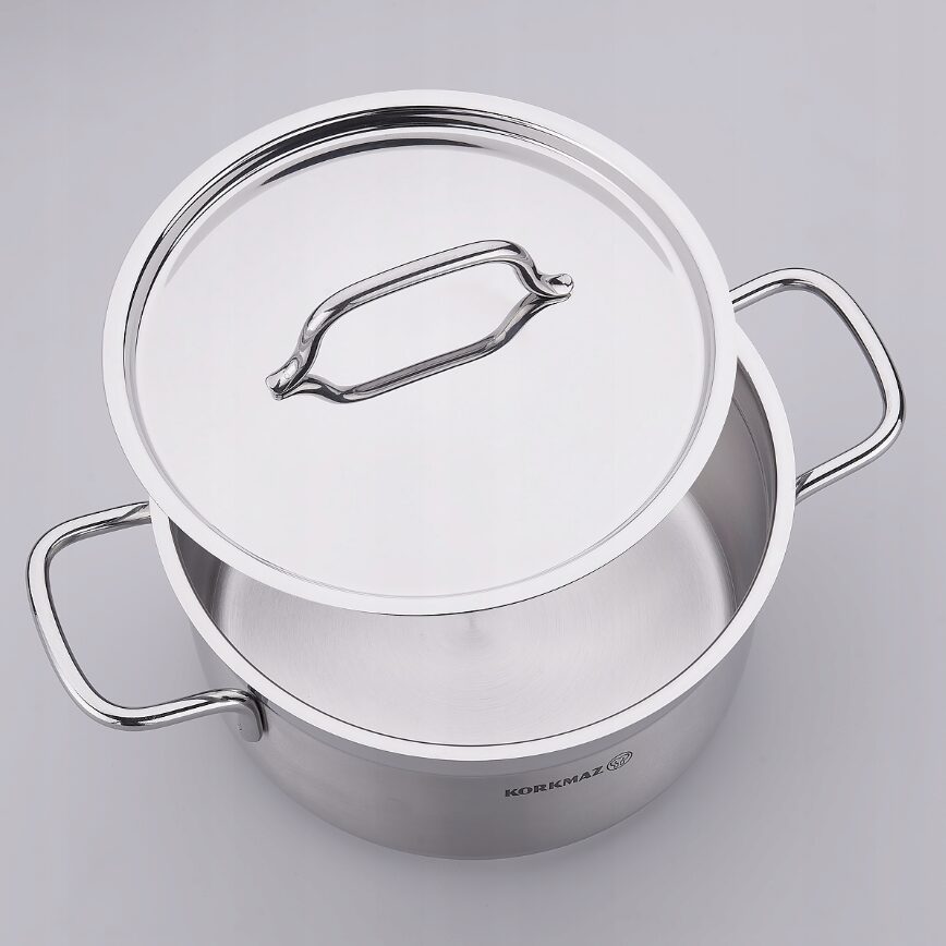 Oala cu capac din inox, 28X14cm 8.5litri, compatibila cu toate tipurile de aragaz, Korkmaz