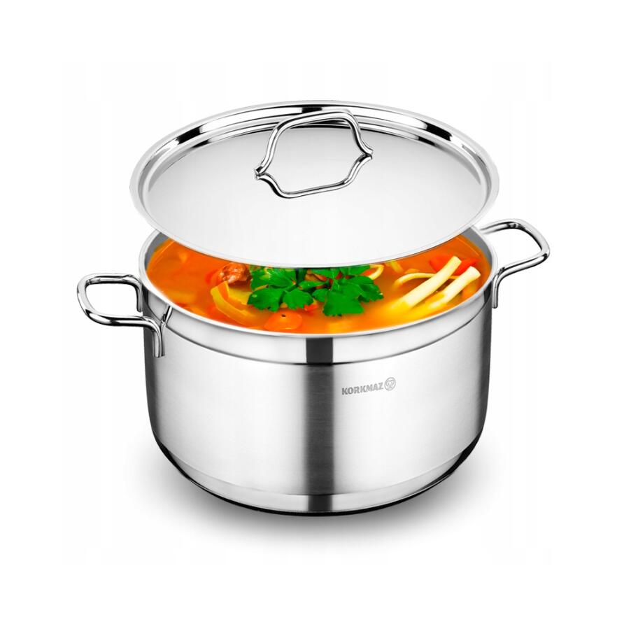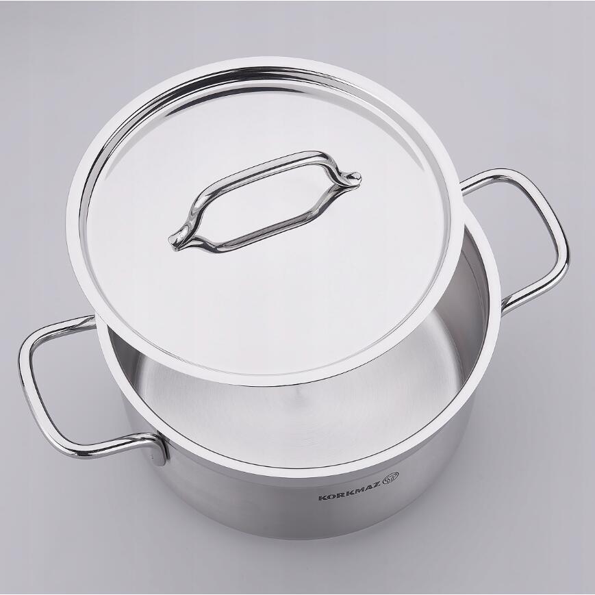 Oala cu capac din inox, 30x15cm 11litri, compatibila cu toate tipurile de aragaz, Korkmaz