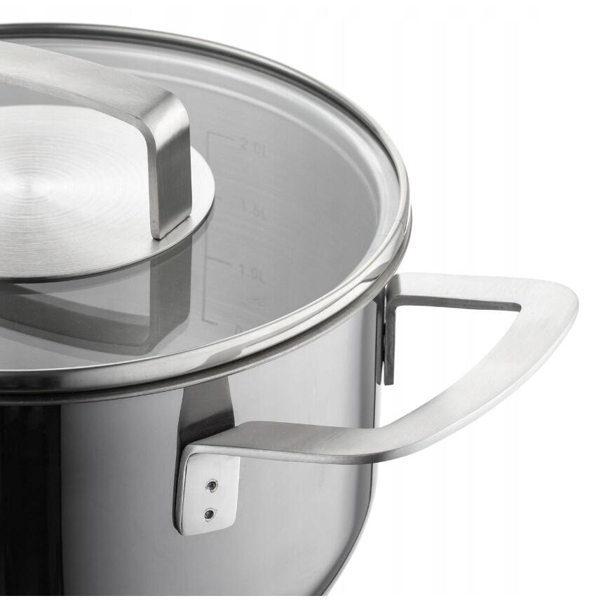 Are mânere care nu se încălzesc, ceea ce vă permite să țineți vasul în siguranță, fără teama de arsuri,