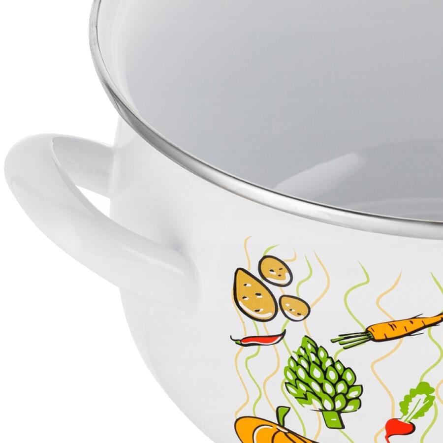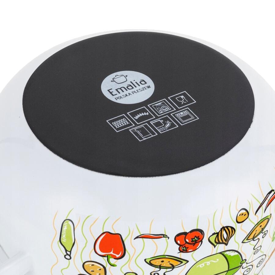 Oala emailata Lumino de la Emalia Polska Pleszew are o capacitate de 5,3 litri.Oala este acoperita cu un strat emailat perfect neted, care, asemenea unei bariere de protectie, previne patrunderea compusilor nocivi in alimente.
