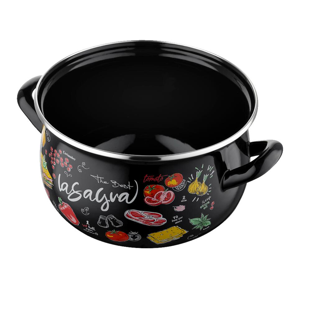 O oală de lasagna cu aspect foarte delicios este o propunere a mărcii Florina. Un fel de mâncare decorat cu ingredientele unei rețete de lasagna este recomandat pentru a pregăti orice fel de mâncare într-un mod sigur pentru sănătatea ta. Oala emailata propusa are o capacitate de 2,2 litri si este potrivita pentru utilizare pe orice aragaz, chiar si cu inductie. Fabricat din otel carbon și acoperit complet cu un strat de email, care previne eficient pătrunderea substanțelor nocive în alimente. Oala nu reacționează cu mâncarea, așa că este recomandată pentru pregătirea mâncărurilor pentru cei alergici și copii. De asemenea, puteți folosi vasul pentru a păstra mâncăruri gătite în frigider. Oala emailată pentru lasagna are un capac de sticlă, astfel încât să poți monitoriza în orice moment gătirea alimentelor. Ușor de curățat, se poate spăla în mașina de spălat vase. Oala este disponibilă și în alte capacități.