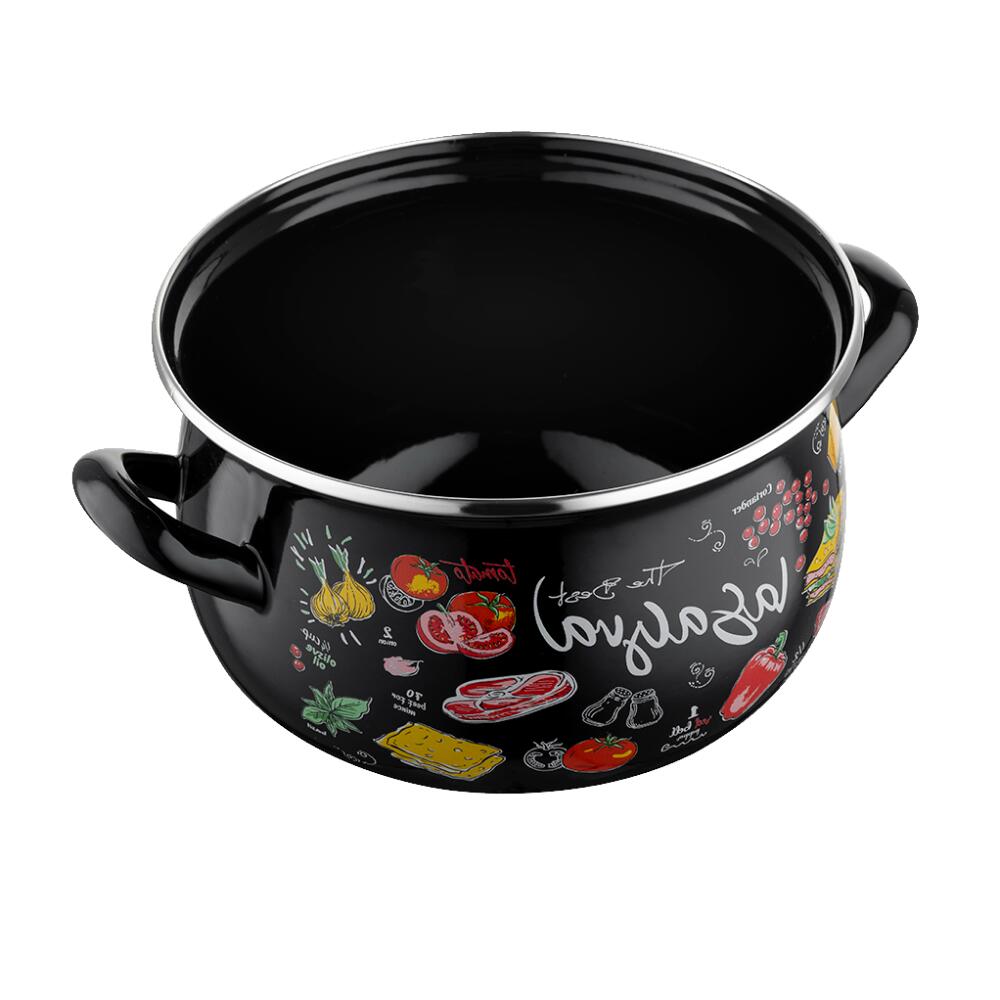 Oala cu capac din sticla, inox, emailata, neagra,16cm-2.2l, FLorina