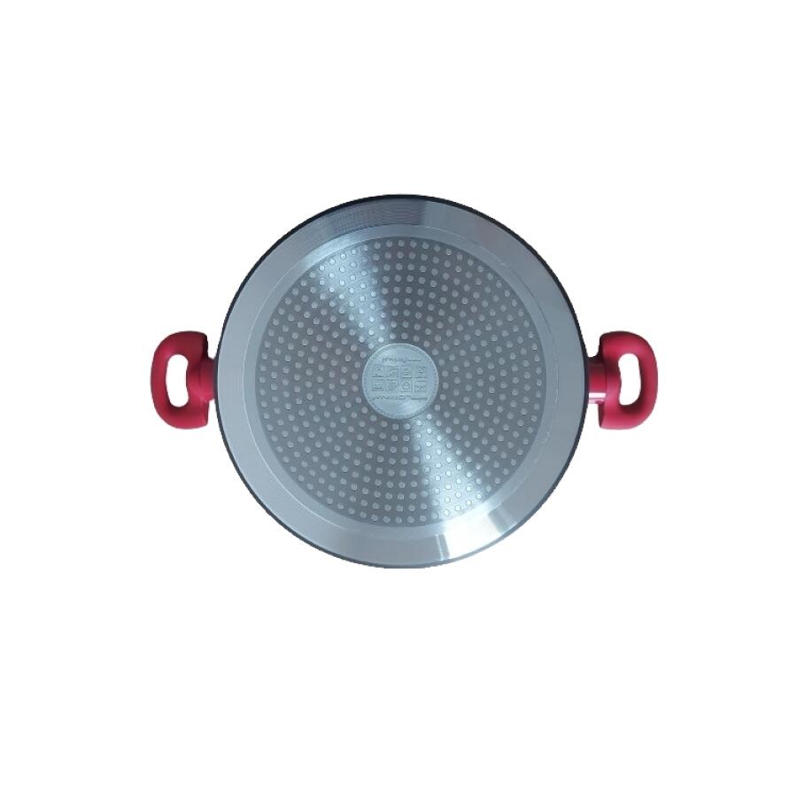 Oala are un mâner frumos, care nu se încălzește, care se potrivește perfect cu stratul antiaderent.