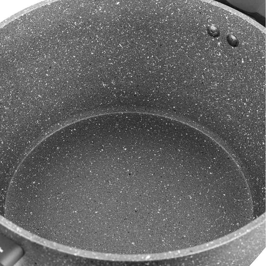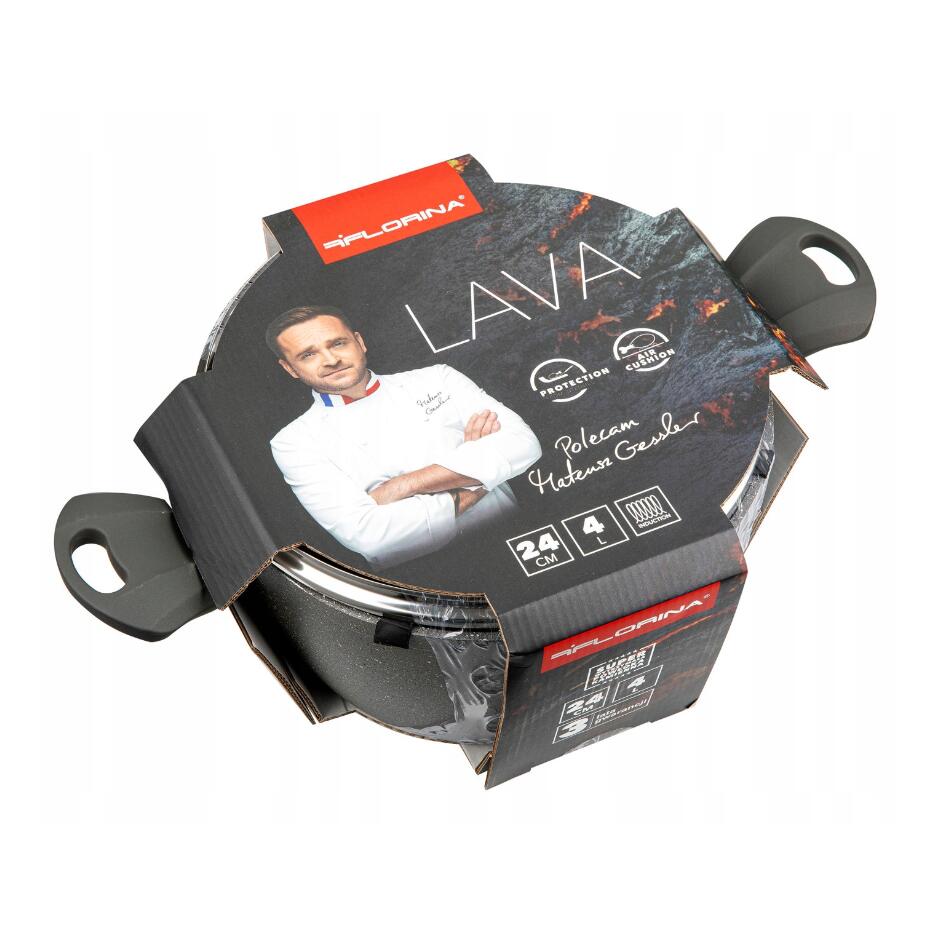 Vasul din piatra de lava are un aspect unic. Această structură originală nu este doar estetică, ci mai presus de toate foarte practică. Învelișul antiaderent cu 5 straturi folosit în interior este responsabil pentru o rezistență de până la 5 ori mai mare . Fundul vasului nu se va uza nici după o utilizare îndelungată. Mai mult, această suprafață neobișnuită care conține compuși minerali permite gătirea cu o cantitate minimă de grăsime.