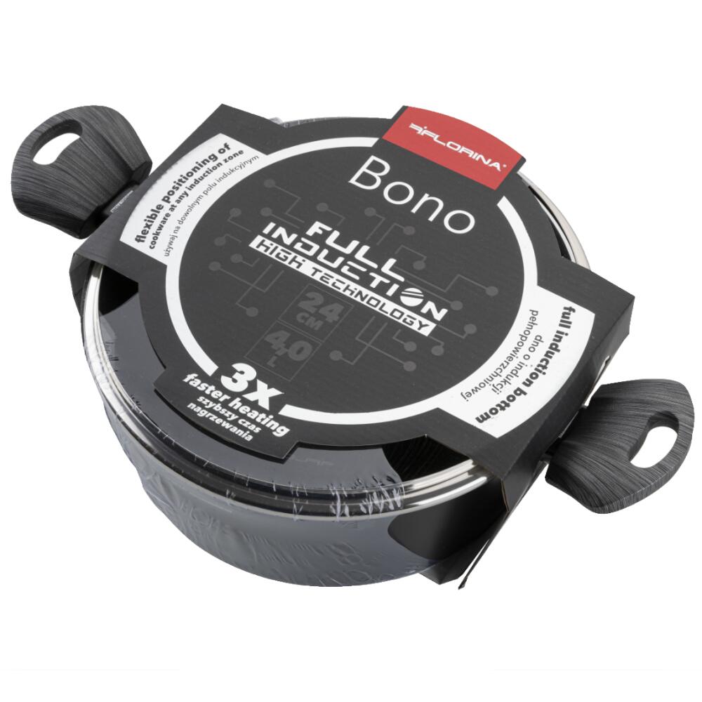 Acesta este viitorul gătitului! - vasele de gătit din seria „BONO” au fost concepute astfel încât să utilizeze întregul potențial al aragazului cu inducție și să eficientizeze procesul de preparare a meselor. Fundul dezvoltat în tehnologia „Full Induction” permite distribuirea directă a căldurii, datorită căreia vasele se încălzesc de aproape 3 ori mai repede decât orice tigaie cu inductie punctuală. Prin urmare, timpul de gătire și, în consecință, costul energiei utilizate sunt minimizate. Inductia pe intreaga suprafata iti ofera libertatea de a folosi vasele pe orice arzator.