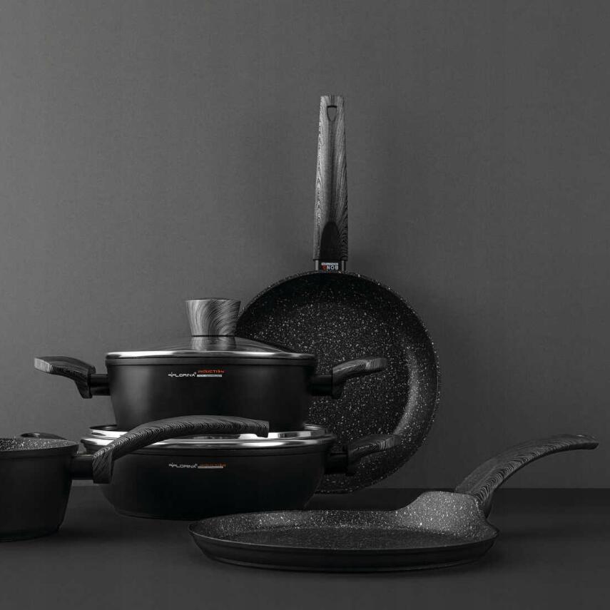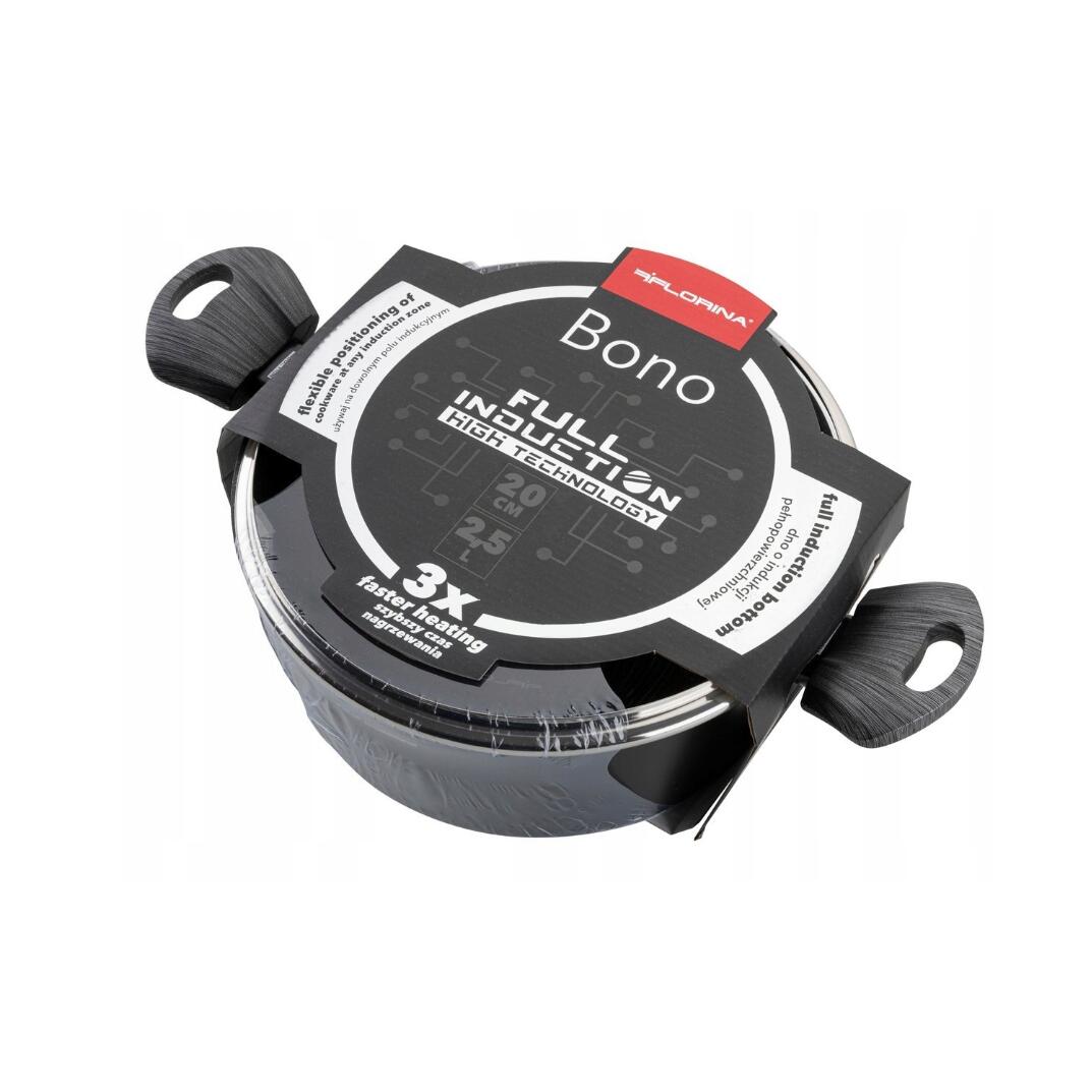 Acesta este viitorul gătitului! - vasele de gătit din seria „BONO” au fost concepute astfel încât să utilizeze întregul potențial al aragazului cu inducție și să eficientizeze procesul de preparare a meselor. Fundul dezvoltat în tehnologia „Full Induction” permite distribuirea directă a căldurii, datorită căreia vasele se încălzesc de aproape 3 ori mai repede decât orice tigaie cu inductie punctuală. Prin urmare, timpul de gătire și, în consecință, costul energiei utilizate sunt minimizate. Inductia pe intreaga suprafata iti ofera libertatea de a folosi vasele pe orice arzator.