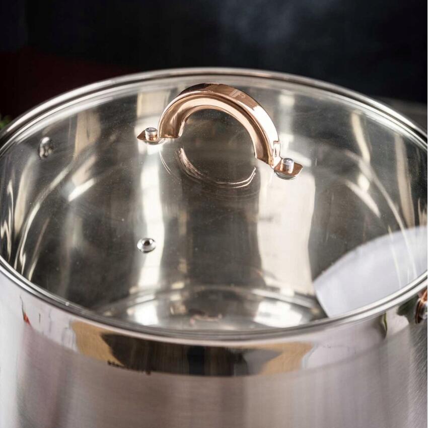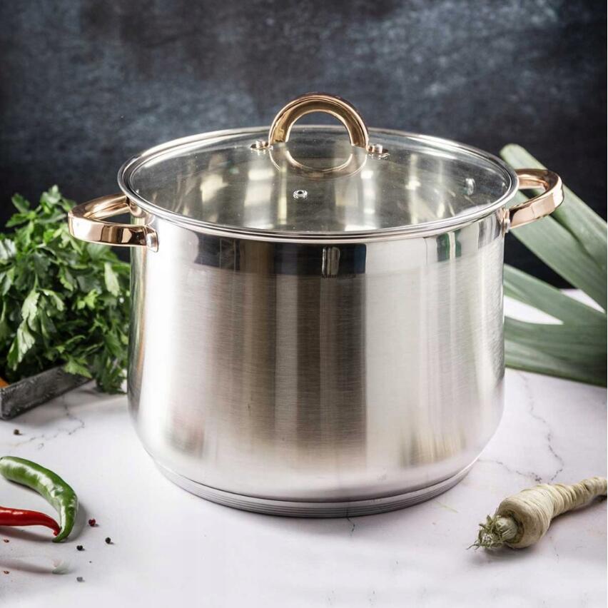 Oala de oțel de 8,6 litri este un vas solid și încăpător, ideal pentru gătirea unor cantități mai mari de alimente, ceea ce este util mai ales atunci când pregătiți mese pentru un număr mai mare de persoane sau pentru ocazii speciale.