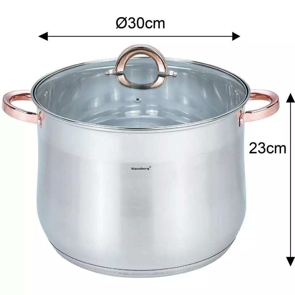 Oală gastro 16 littri 30cm cu capac din sticlă și mânere din aur roz de la Klausberg .