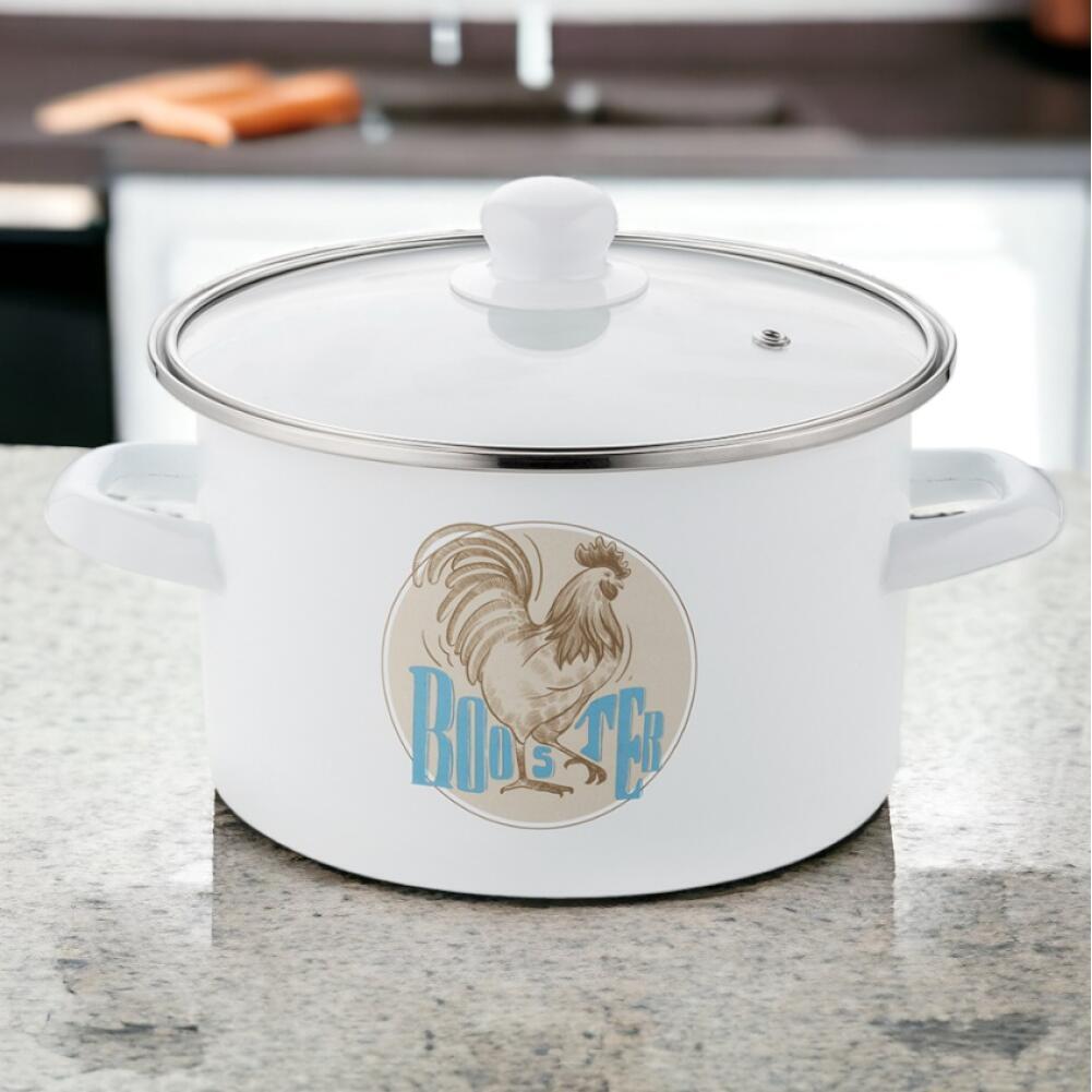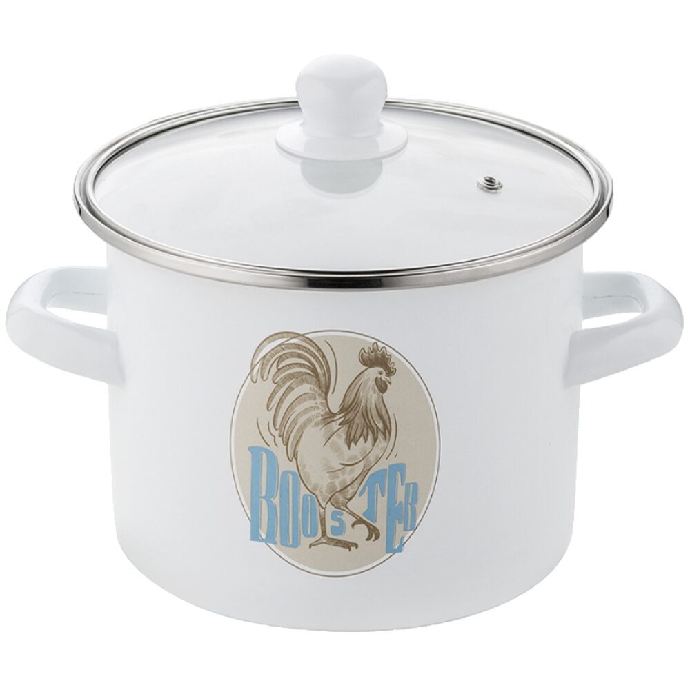Ghiveciul nostru emailat de 4,2 litri cu un motiv de cocoș de la Emalia Pleszew combină durabilitatea oțelului de înaltă calitate cu un strat de smalț sticlos, sigur pentru sănătate, care împiedică compușii nocivi să intre în alimente. Datorită capacului de sticlă cu aerisire și ornamente din oțel inoxidabil, gătitul devine mai ușor și mai sigur. Perfect pentru prepararea meselor sanatoase pentru copii si alergici, aceasta oala este usor de curatat si poate fi folosita pe toate tipurile de aragaz. Datorită mânerelor solide, garantează o utilizare în siguranță, iar designul său colorat adaugă un farmec unic bucătăriei.