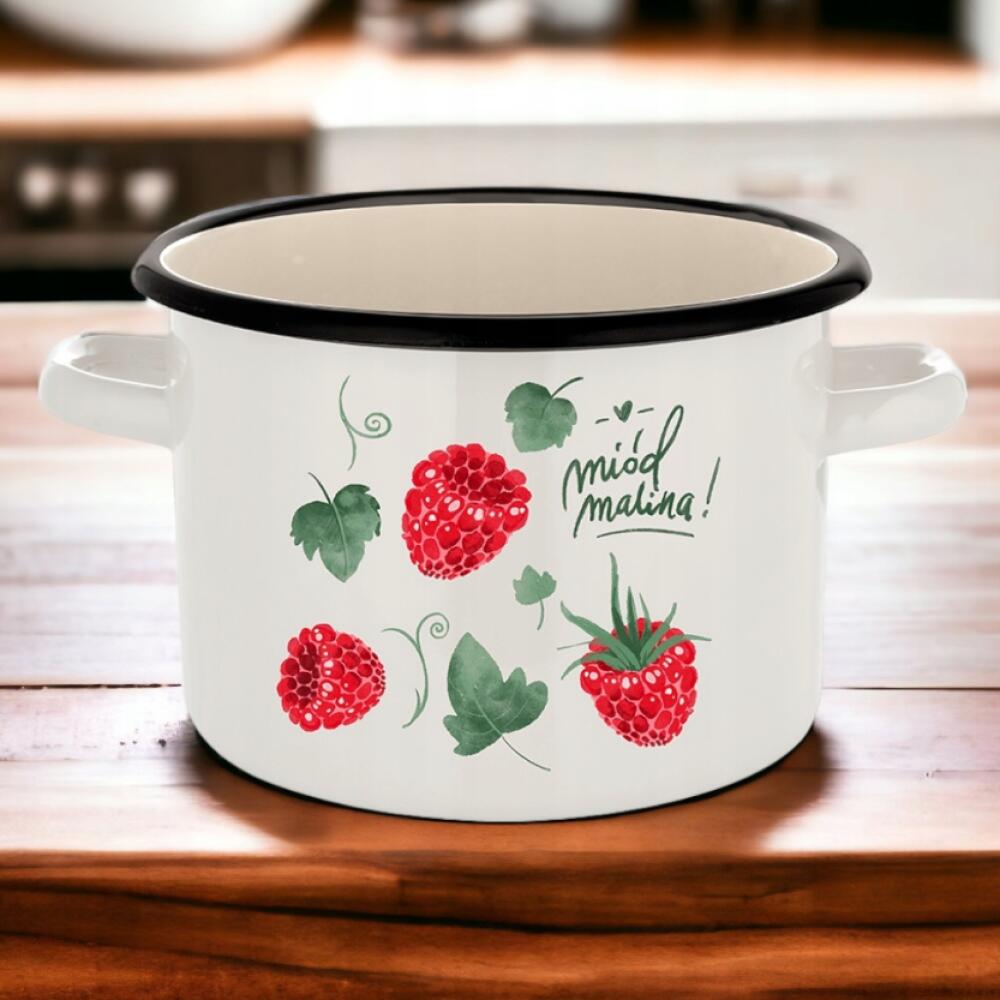 Oala emailata Zmeura are un diametru de 18 cm si o capacitate de 3,2 l. Ghiveciul este realizat din otel si acoperit cu un strat de email, ceea ce il face complet sigur pentru cei care sufera de alergii. Potrivit pentru toate tipurile de aragaz.