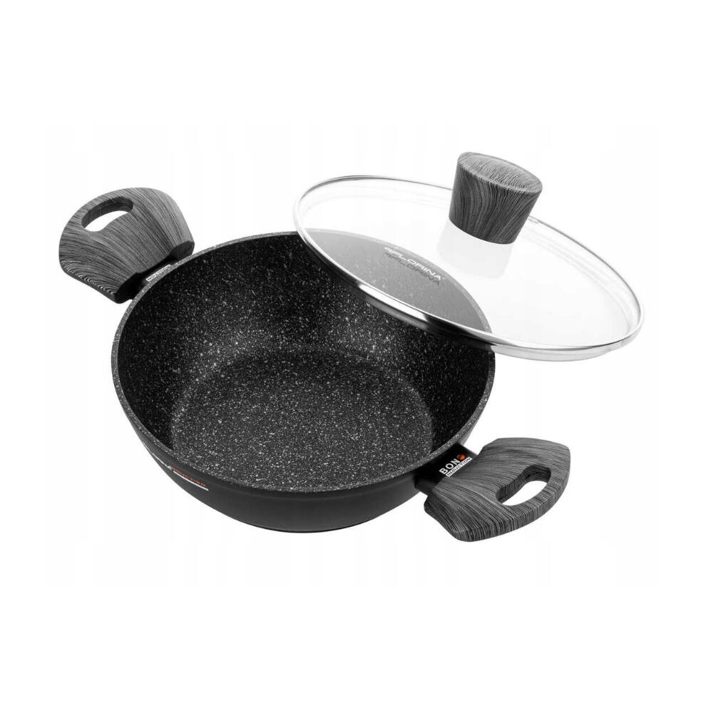 S-ar părea că un bucătar profesionist nu mai poate fi surprins de nimic. Am reusit! Cunoscutul și popularul bucătar Mateusz Gessler a descoperit oala Bono de la FLORINA, care vă oferă spațiu suficient pentru a experimenta pe orice aragaz, în special pe inducție. Pentru a spune mai clar, oala este una dintre puținele de pe piața poloneză care are un fund cu inducție pe toată suprafața. Aceasta înseamnă că va fi detectat de aragaz pe fiecare zonă de gătit. Vasul cu diametrul de 20 cm are o capacitate de 1,6 litri si este recomandat pentru pregatirea meselor de zi cu zi.