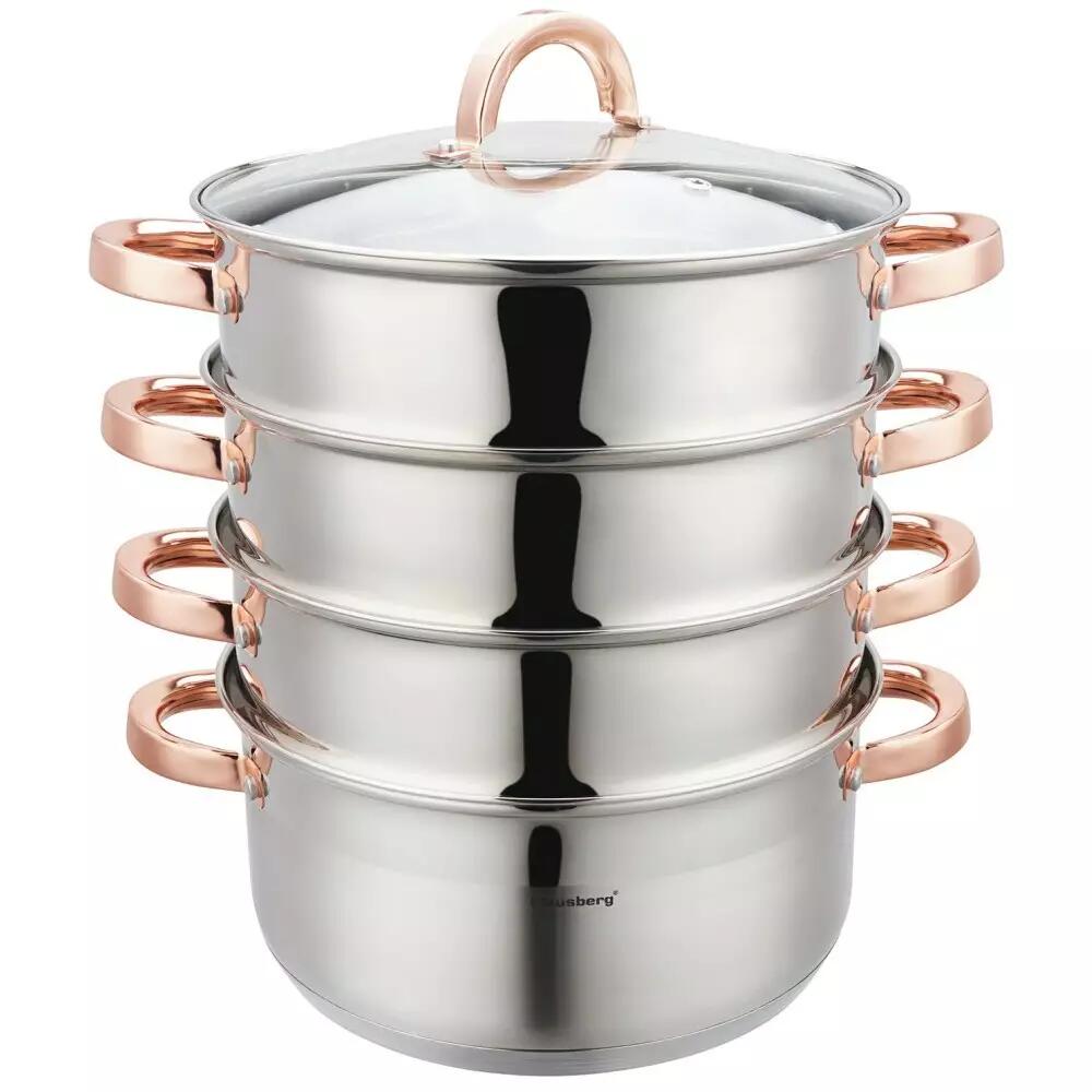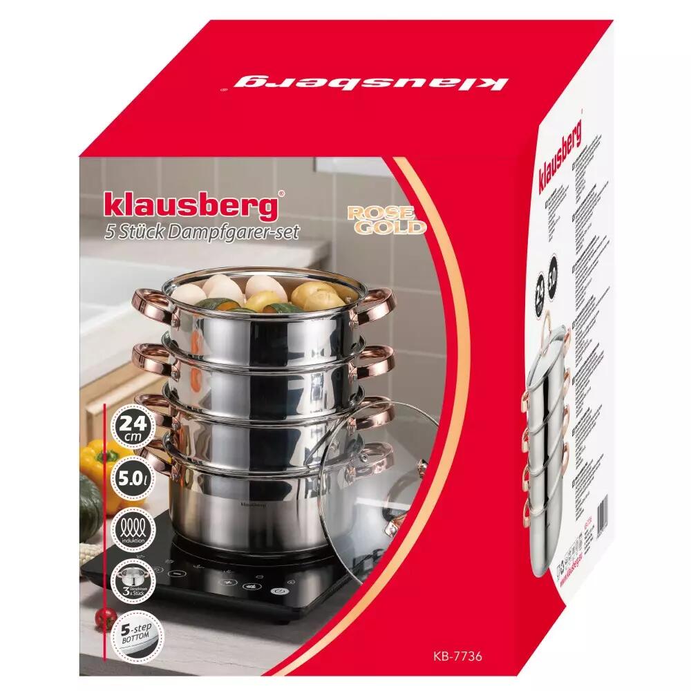 Oala pentru fiert la abur, 5 elemente, cu manere roze, 24cm, 5.0L, Klausberg