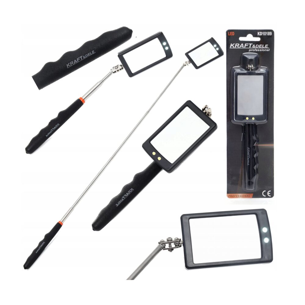 Oglinda telescopică de inspecție cu LED-uri vă permite să vizualizați obiecte în locuri greu accesibile. Oglinda este dotată cu lumini LED, permițându-vă să ajungeți chiar și în zonele întunecate.
