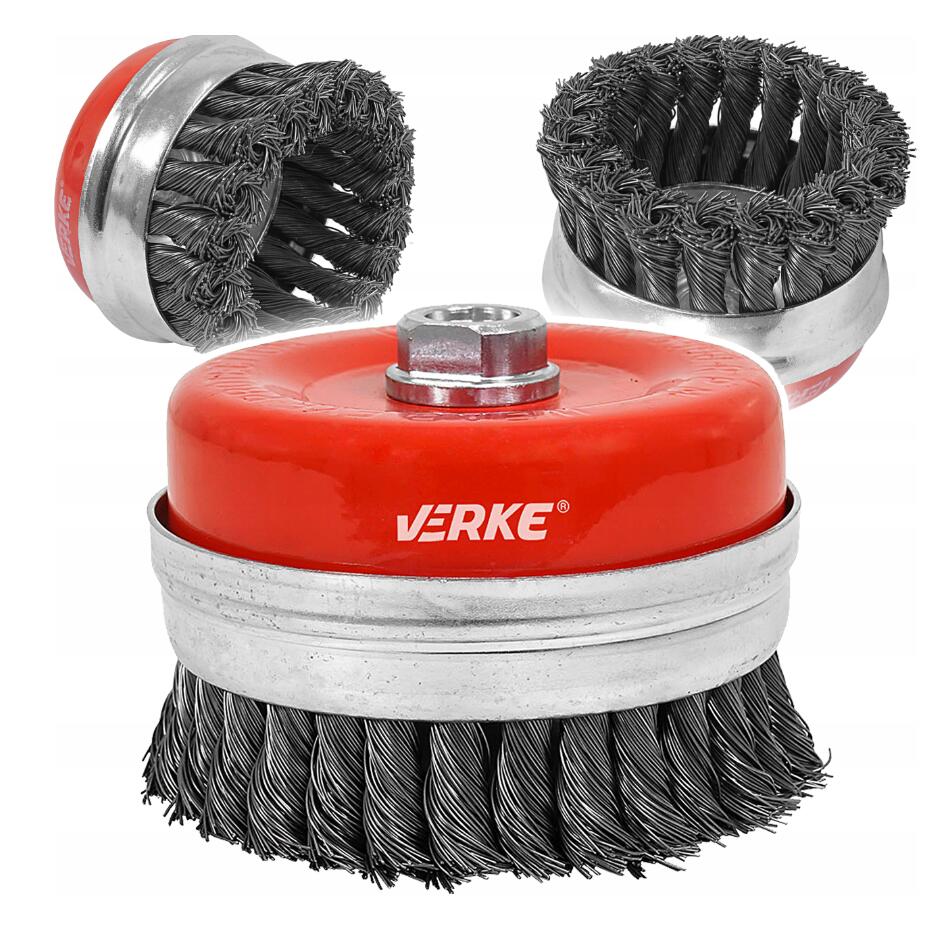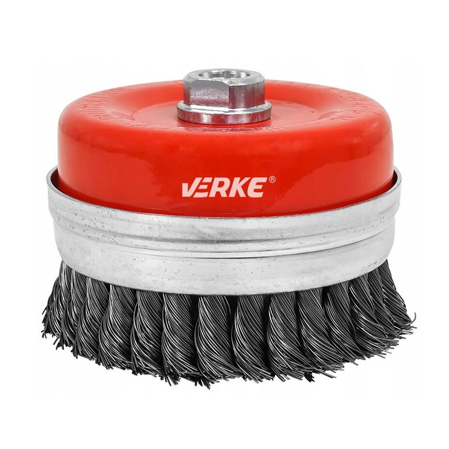 Perie sarma tip cupa, cu toroane, otel, 100mm, M14, pentru polizor, Verke