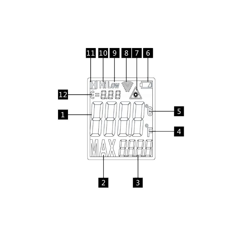Asigurati-va ca obiectul de masurat este mai mare decat punctul de masurare. Cu cat tinta este mai mica, cu atat pirometrul ar trebui sa fie mai aproape de tinta. Raportul dimensiunii spotului este de 12: 1.
