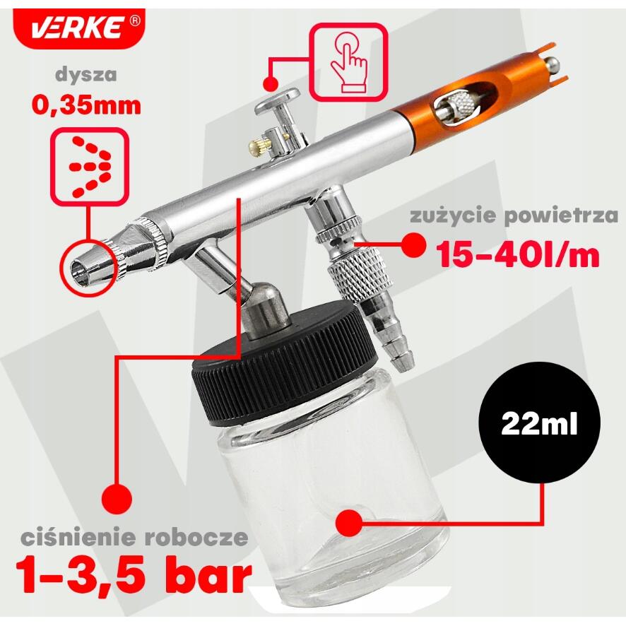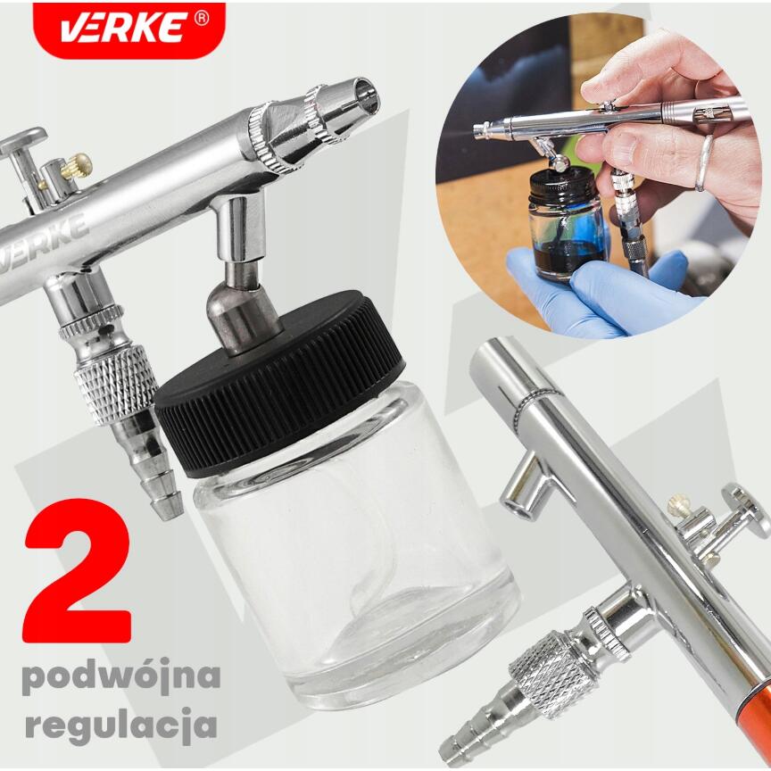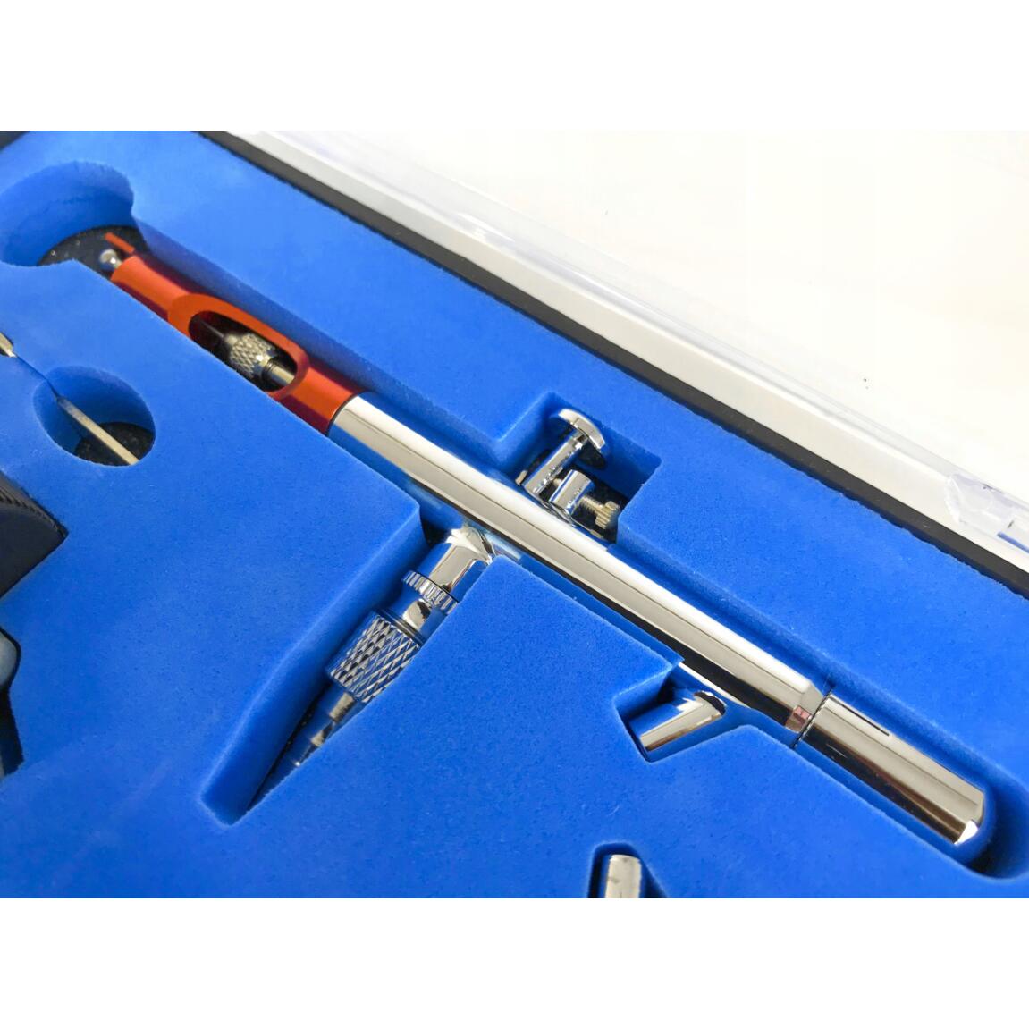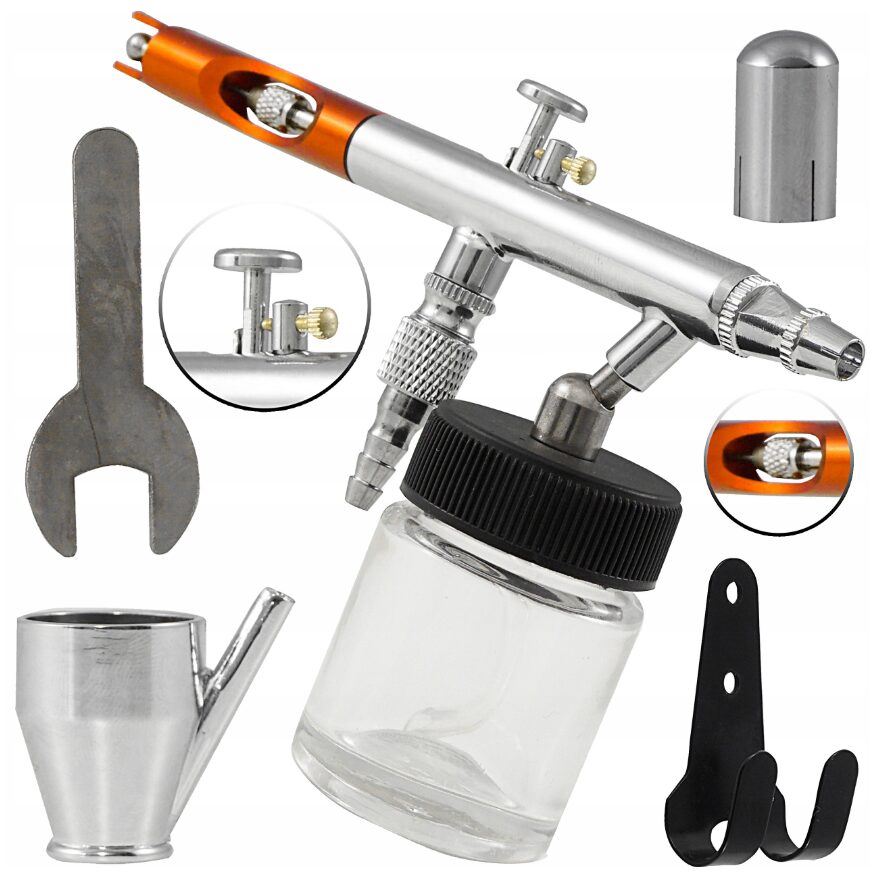Aerograf - un pistol în miniatură pentru pictură precisă. Un mic instrument de mână folosit pentru vopsire prin pulverizarea vopselei printr-un curent de aer. Urma de vopsea se caracterizează printr-o acoperire uniformă cu margini neclare. Puteți picta liber aplicând vopsea direct pe suprafața de acoperit sau folosind șabloane adecvate. Aerograful este folosit pentru vopsirea atât a suprafețelor plane, cât și a obiectelor cu forme complexe. Vă permite să pictați detalii precise. Este folosit în retușuri, conservare, modelare, decorare artizanală a obiectelor mici, dar și ca tehnică artistică (aerografia). Avantaje: precizie foarte mare la aplicarea vopselei, design profesional, duza din otel inoxidabil de calitate superioara asigurand o durata lunga de viata a pistolului, greutate si dimensiuni reduse, reglaj dublu spray, super calitate, din otel rezistent la coroziune.