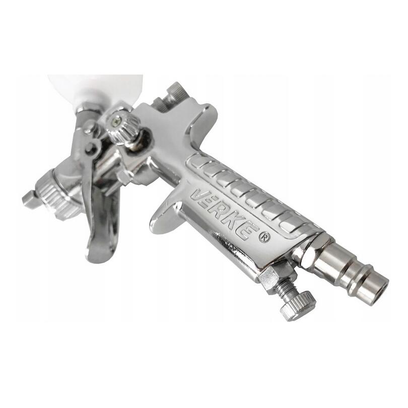 Pistoalele de pulverizare HVLP de înaltă presiune de la Verke se caracterizează prin design profesional și precizie ridicată în aplicarea vopselei. Atomizarea excelentă, viteza de operare, ergonomia și cea mai înaltă calitate a manoperei sunt cele mai importante avantaje ale acestora. Sunt destinate utilizării în diverse tipuri de activități și domenii. Duza și acul din oțel inoxidabil de înaltă calitate și trei opțiuni de reglare asigură controlul deplin asupra lucrării. Pistoalele Verke se caracterizează printr-un mâner ergonomic și ușor, permițând un lucru lung și confortabil.