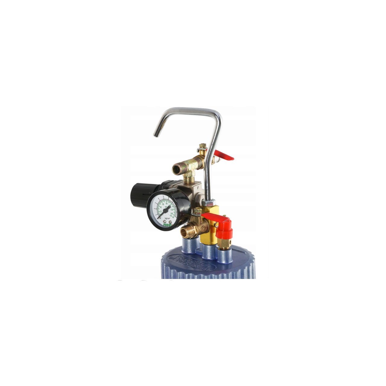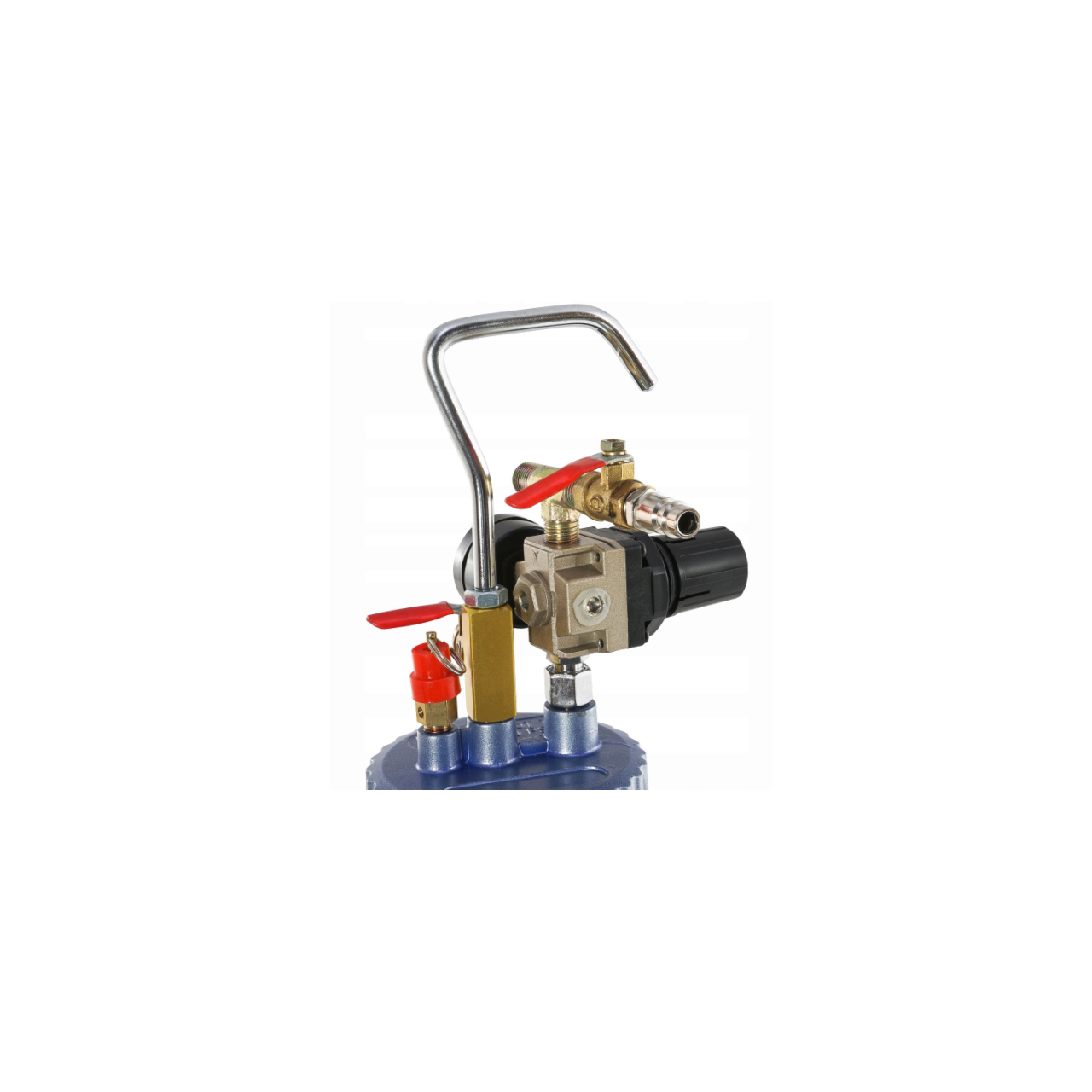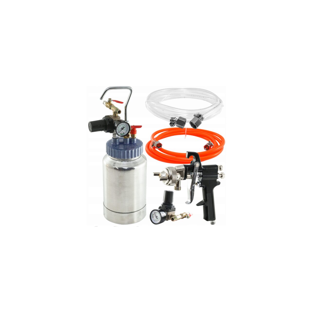 Pistol de pulverizare pneumatic utilizat împreună cu un rezervor de vopsea. Setul se caracterizează prin parametri de pulverizare foarte buni și viteză mare de vopsire. Sistemul de pulverizare permite utilizarea unei cantități mari de vopsea, care poate fi aplicată rapid, economisind timp și bani. Vas sub presiune din oțel neted, cu rezistență ridicată la coroziune. Unitatea poate fi folosită pentru a aplica practic toate vopselele și lacurile, adezivii, emulsiile, petele, vopselele anticorozive, tapetele cu spray.