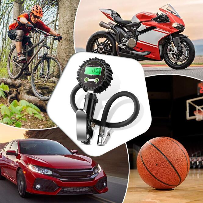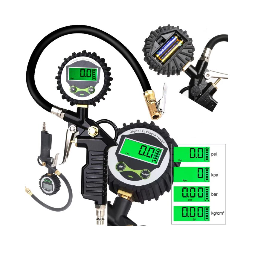 Datorită afișajului digital precis, utilizatorul poate controla și regla cu ușurință presiunea aerului, ceea ce face ca acest model să fie o soluție ideală pentru măsurarea și umflarea anvelopelor în diverse vehicule.